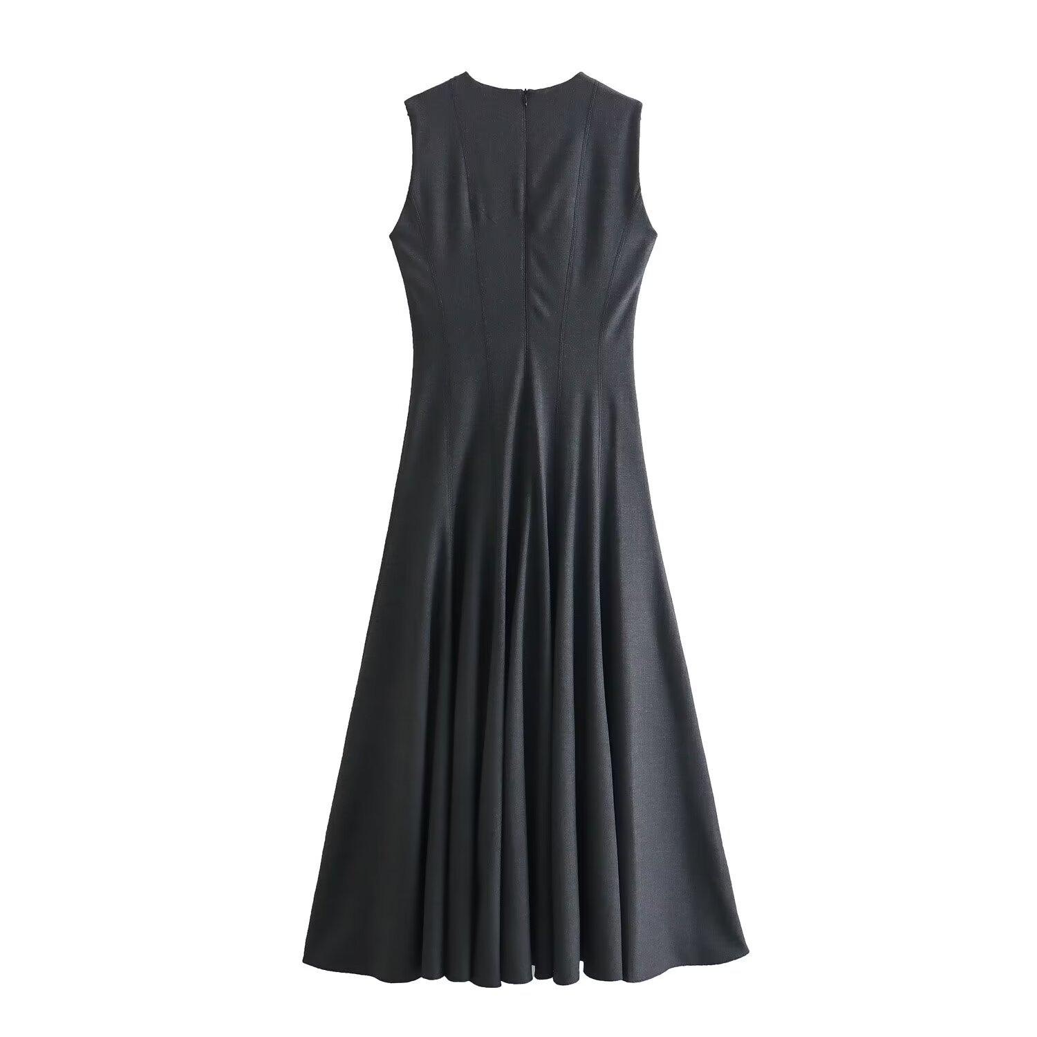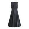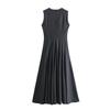 Venta al por mayor de ropa para mujer transfronteriza europea y americana, primavera 2024, nuevo, elegante, ligero, maduro, plisado, sin mangas, cuello redondo, vestido largo