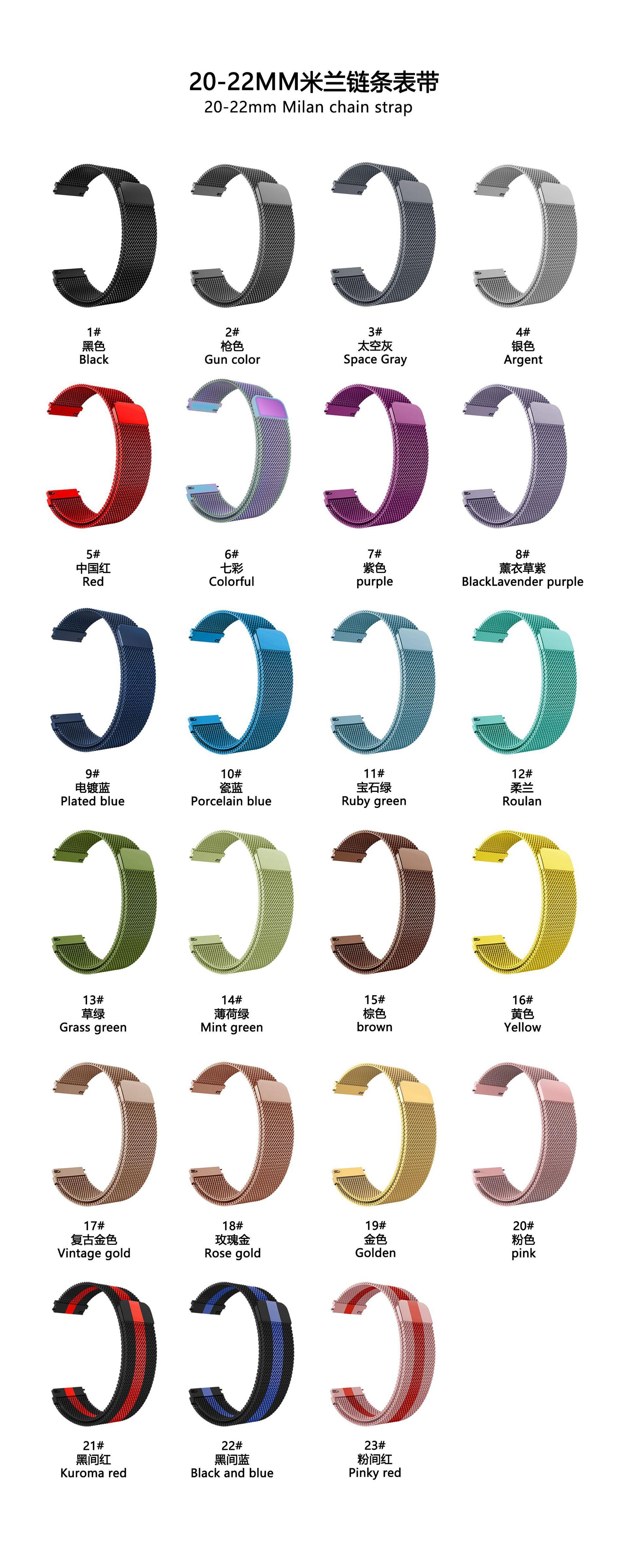 【Tamaño】El ancho de la correa es de 22 mm de ancho y 20 mm de ancho, la longitud es de aproximadamente 230 milímetros, la longitud es moderada, adecuada para muñecas de 140 mm a 220 mm, adecuada para la gran mayoría de los grupos de clientes de comercio exterior y nacionales.