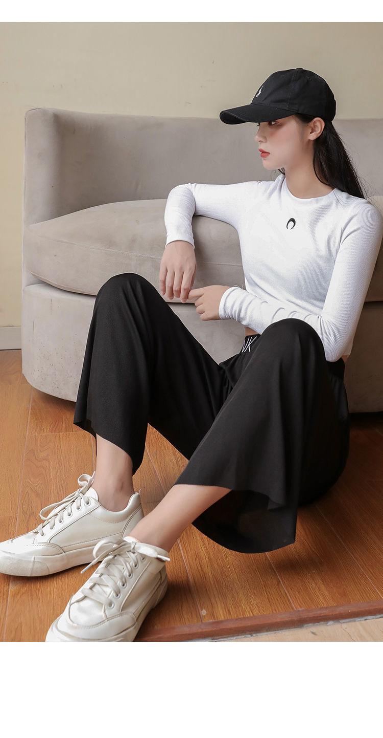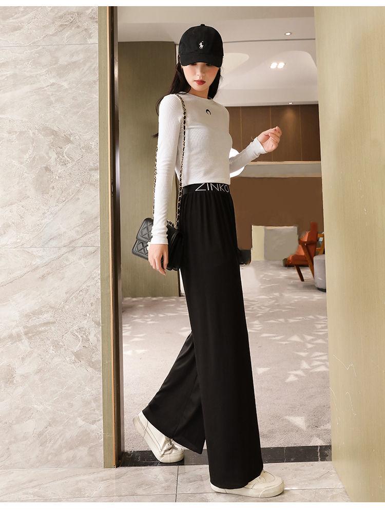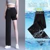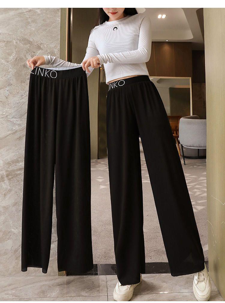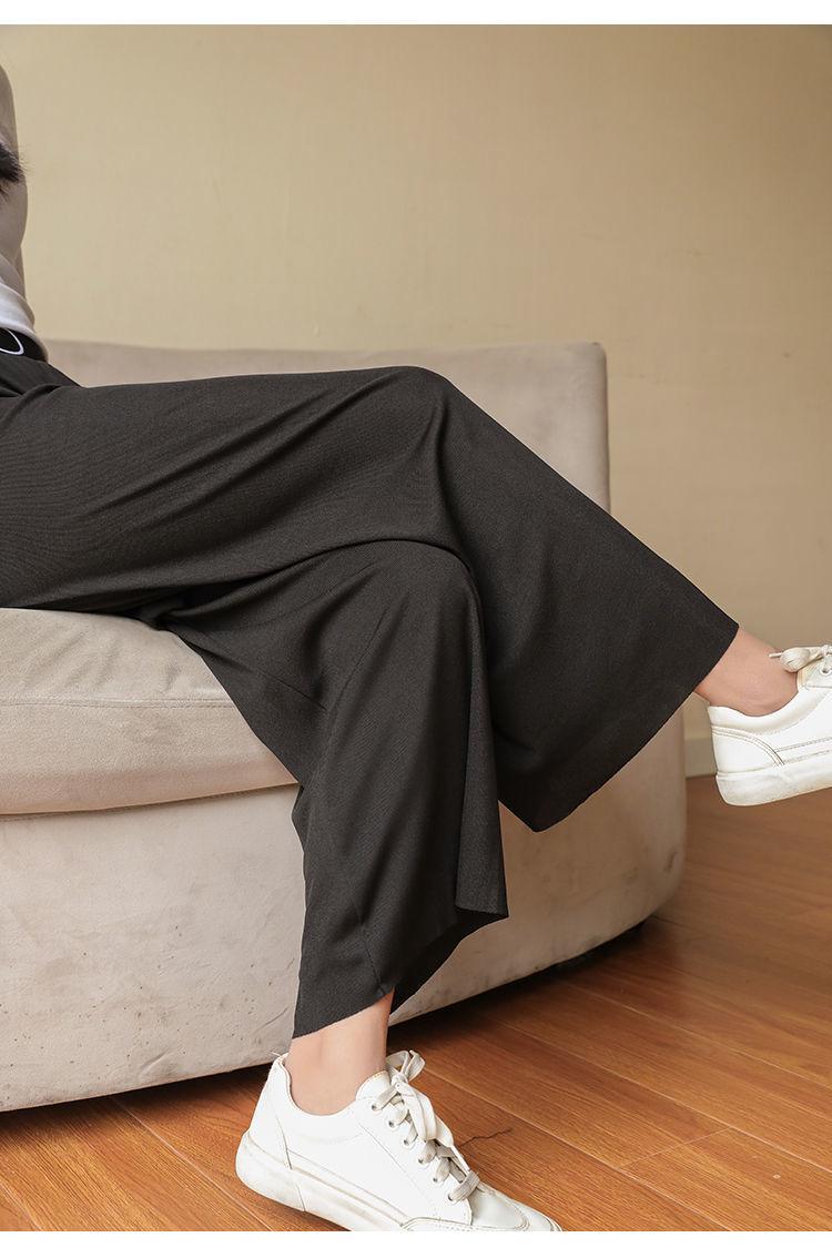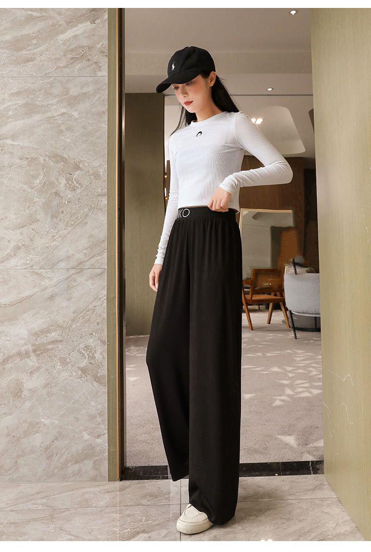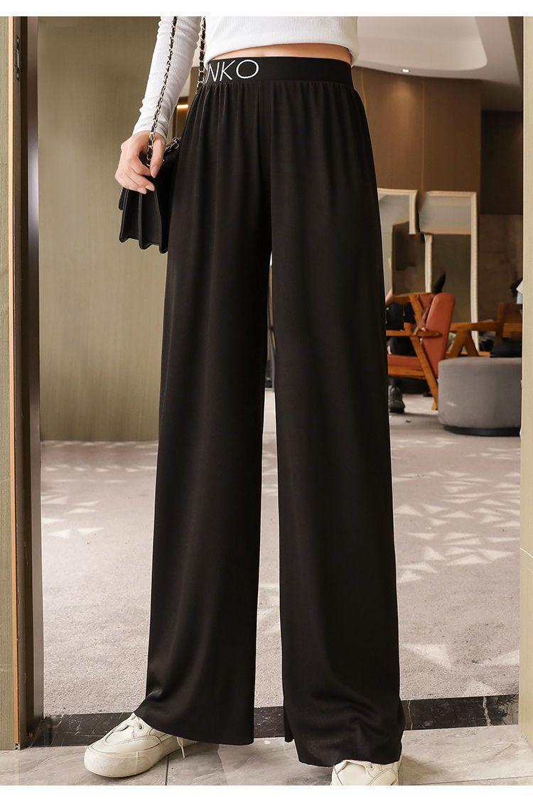 Pantalones anchos de seda de hielo para mujer, verano 2023, pantalones rectos de cintura alta, finos y drapeados, pantalones casuales holgados y adelgazantes de nueve puntos.