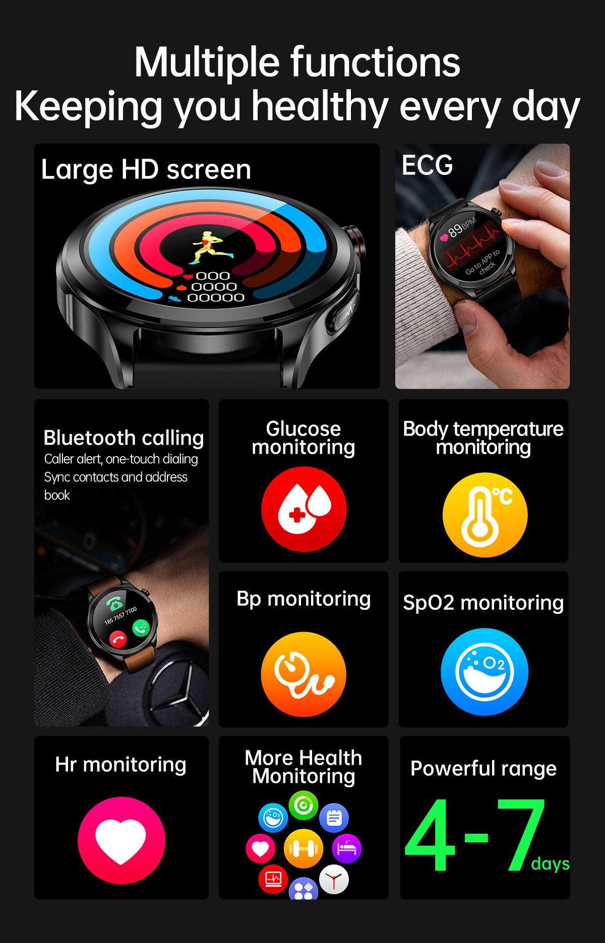 Reloj Inteligente TK22 Llamada Bluetooth Glucosa en Sangre Frecuencia Cardíaca Presión Arterial Oxígeno en Sangre Monitoreo del Sueño Podómetro Reloj Deportivo Pulsera