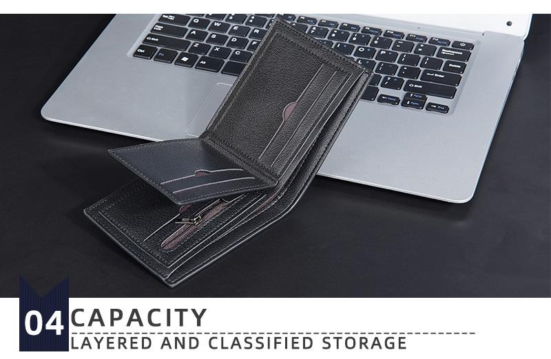 Nueva billetera corta para hombre, billetera multitarjeta con tres pliegues, antimagnética, con borde cruzado, para monedas y tarjetas.