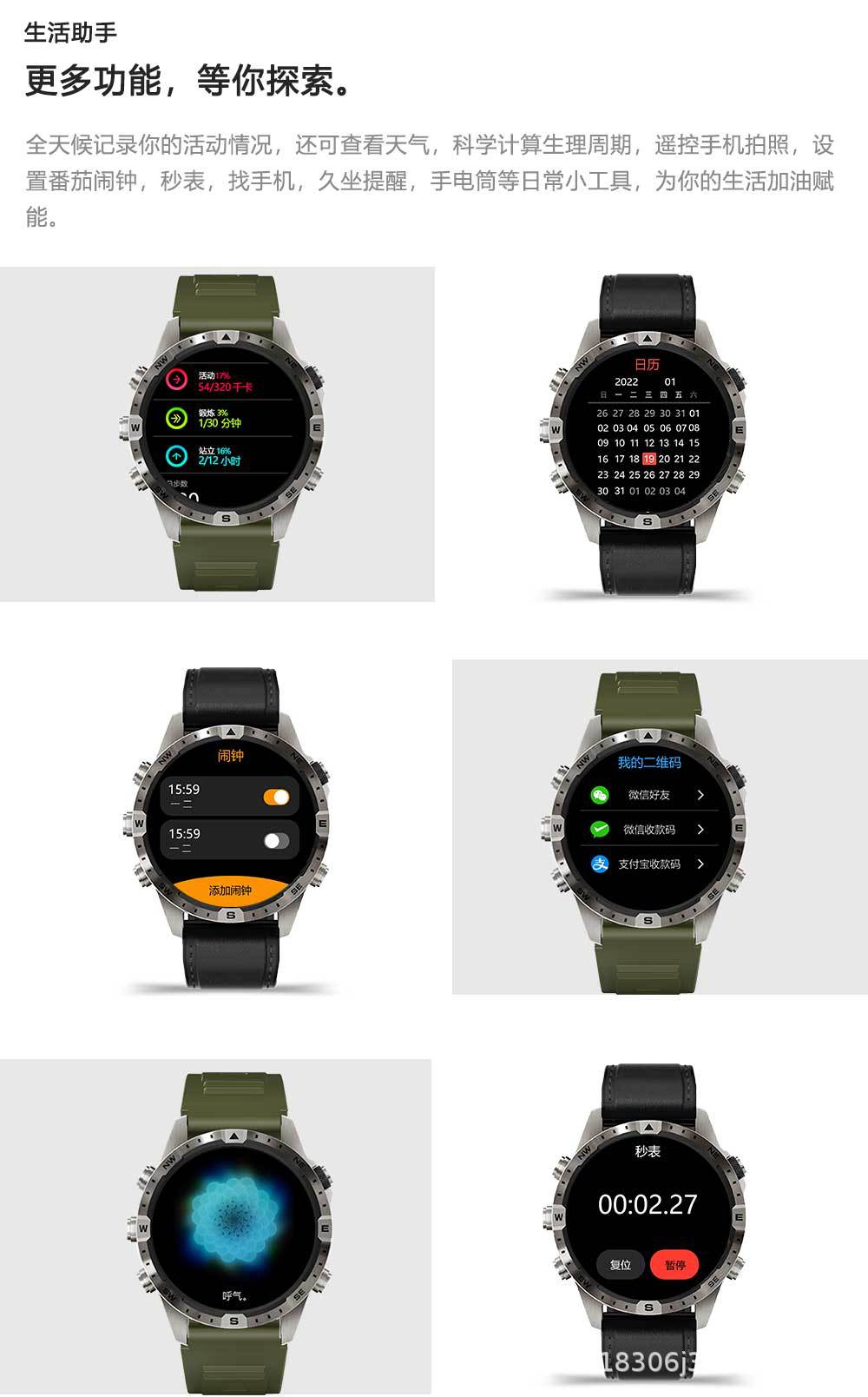 13. Otras funciones: minijuegos, mi código QR (pago Alipay), despertador, cronómetro, cuenta regresiva, modo no molestar, levantar la muñeca para iluminar la pantalla, encontrar el teléfono, cámara de control remoto, calculadora, linterna, calendario, etc.