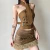 Chaleco sexy sin espalda para mujer, estilo europeo y americano transfronterizo, verano 2024, nuevo, ajustado, de color sólido, estilo urbano, con cuello colgante para mujer
