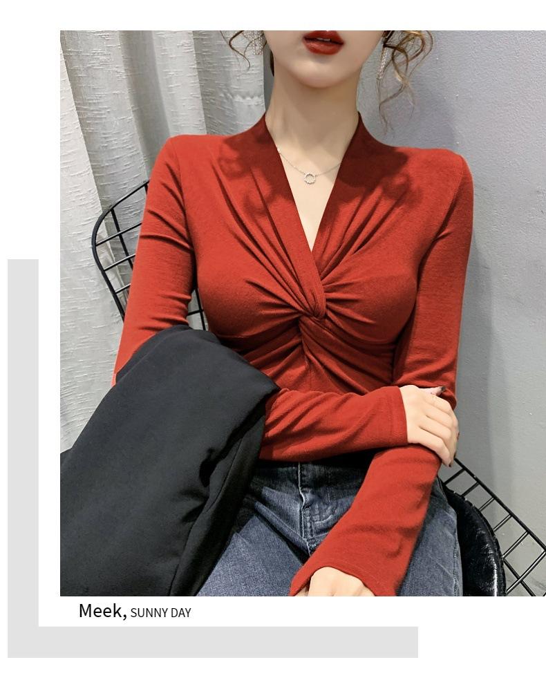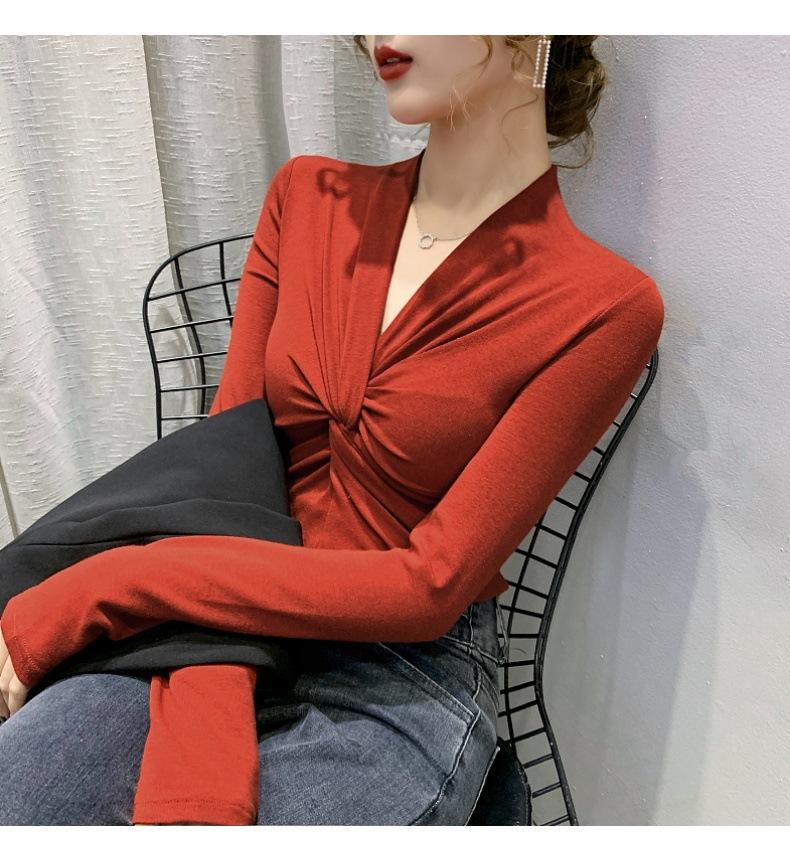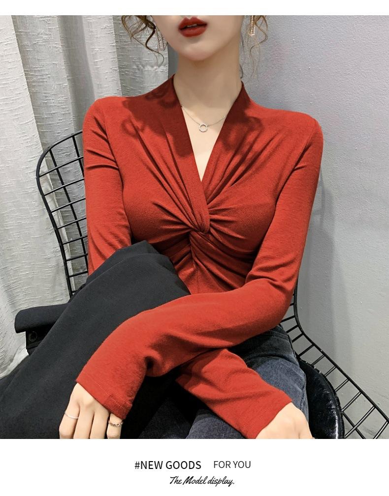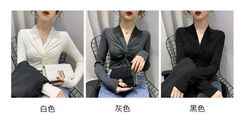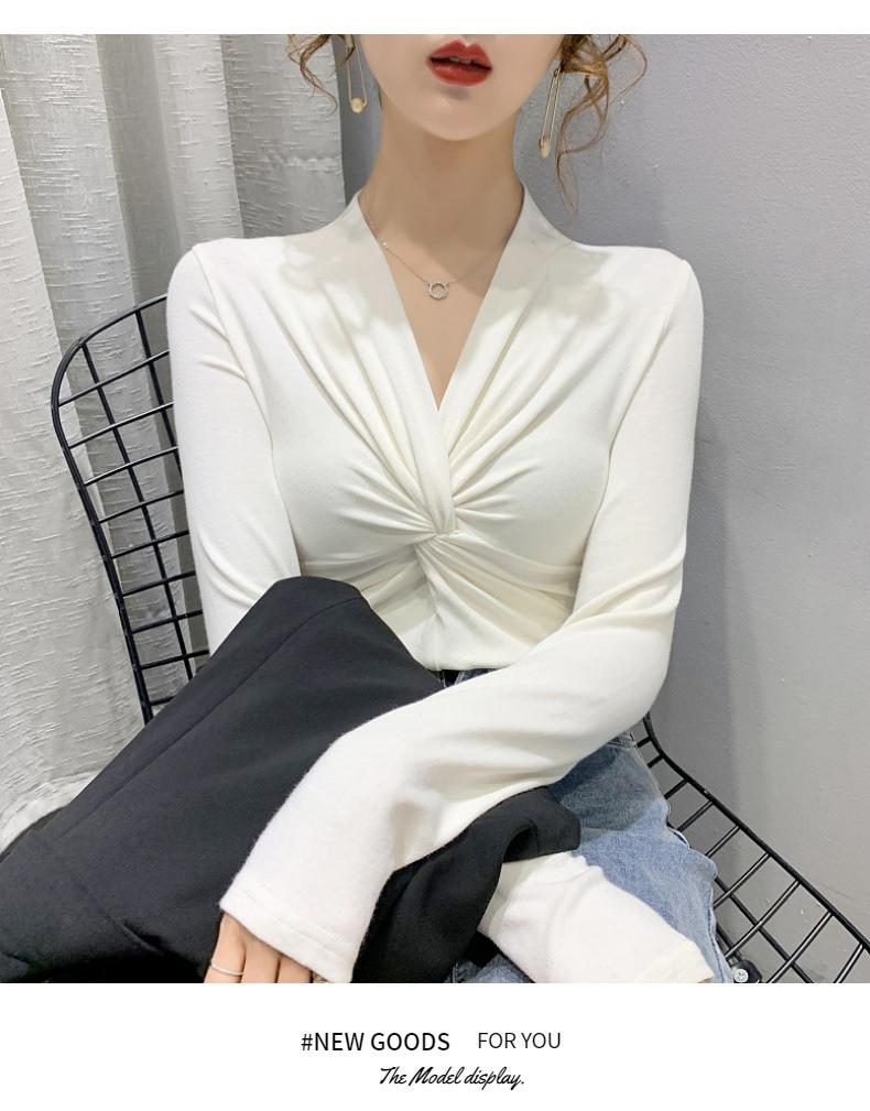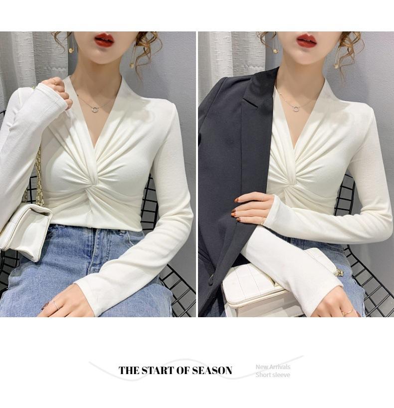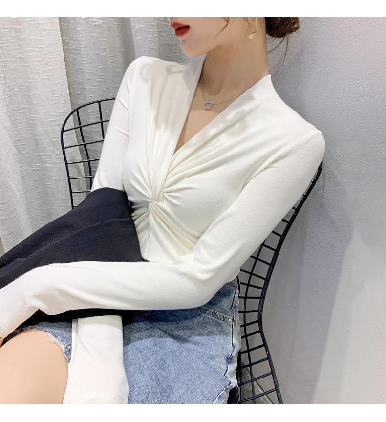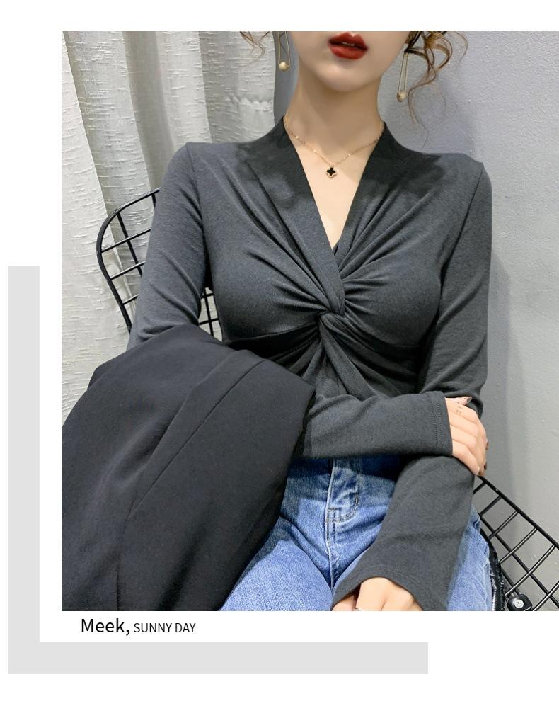 Compra Playera de Manga Larga con Cuello en V Profundo para Mujer Ajustada 2023 Otoño Nuevo Estilo Top Twist Camiseta Básica Ropa Interior al por mayor en Joom.pro