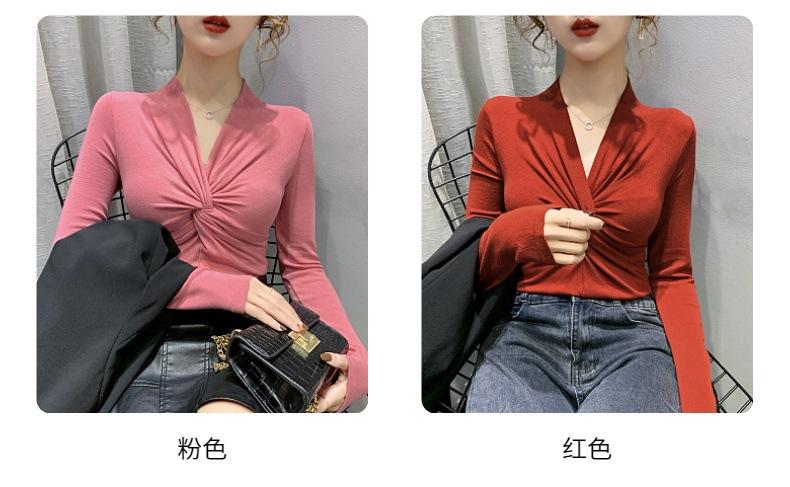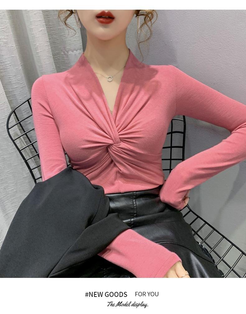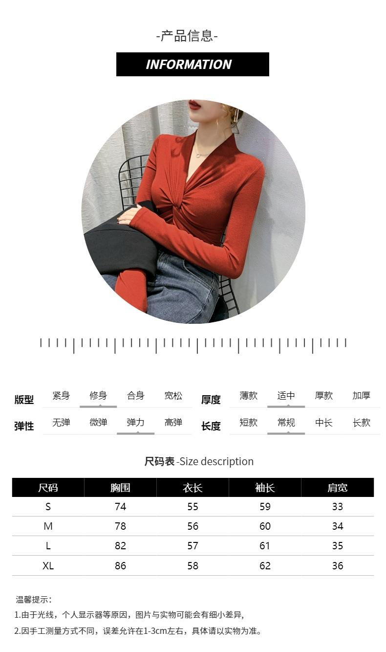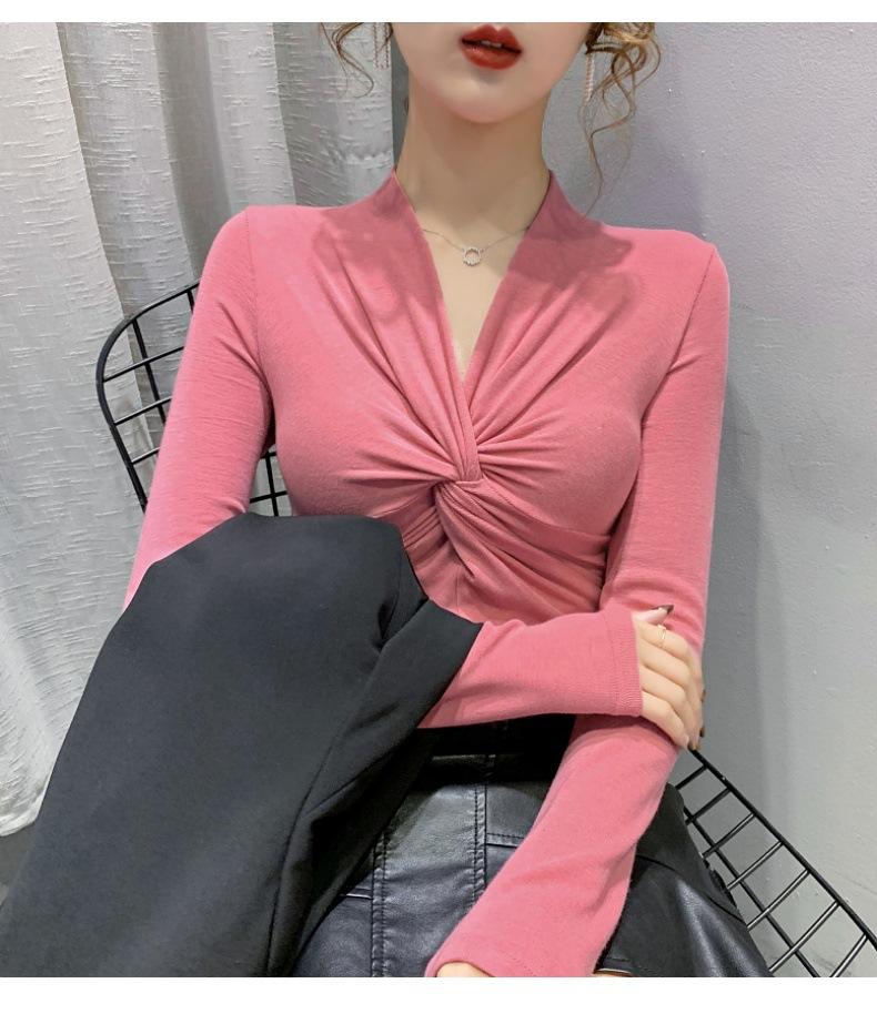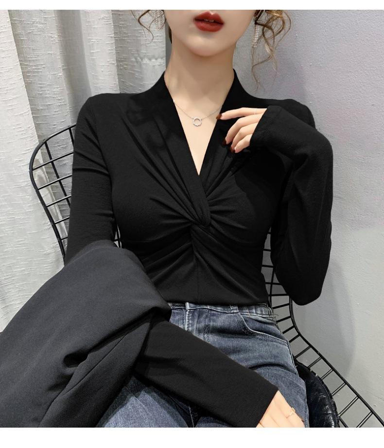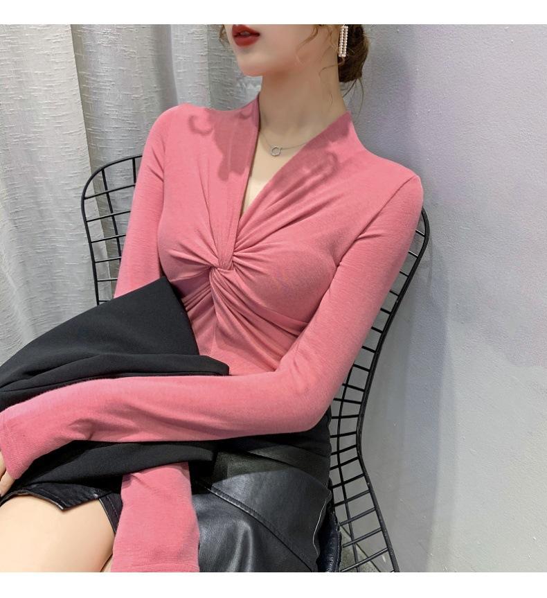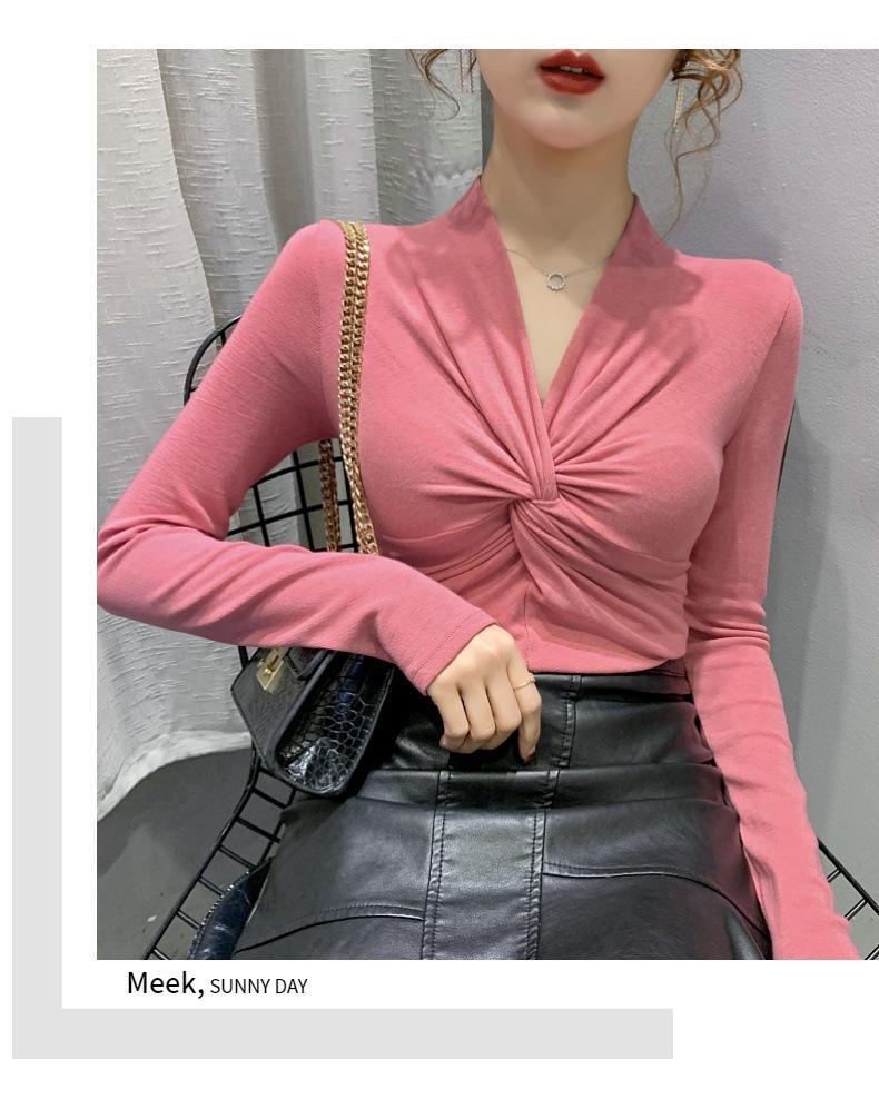 Compra Playera de Manga Larga con Cuello en V Profundo para Mujer Ajustada 2023 Otoño Nuevo Estilo Top Twist Camiseta Básica Ropa Interior al por mayor en Joom.pro
