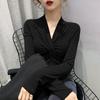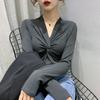 Playera de Manga Larga con Cuello en V Profundo para Mujer Ajustada 2023 Otoño Nuevo Estilo Top Twist Camiseta Básica Ropa Interior