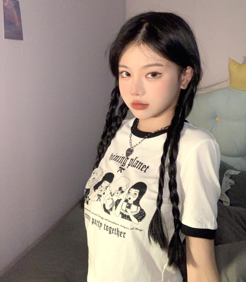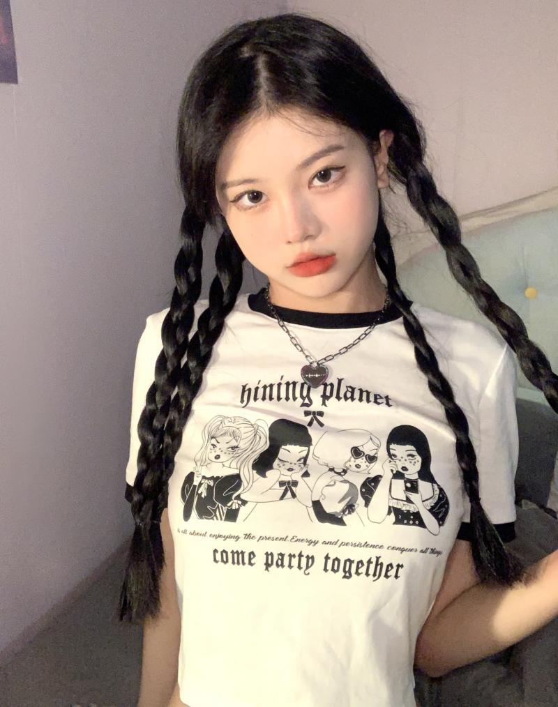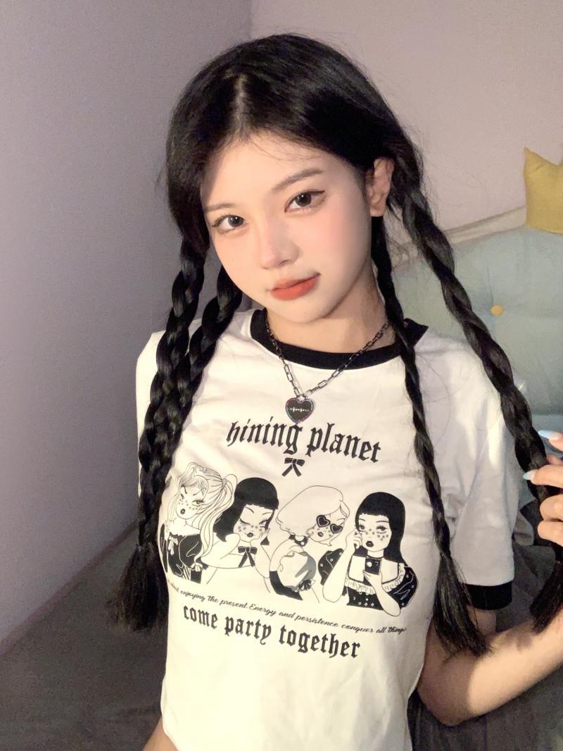 Playera de Manga Corta Estilo Dulce Sexy para Mujer Verano 2025 Nuevo Diseño Ajuste Entallado Ombliguera Corta para Estudiantes
