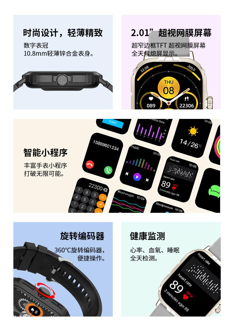 | Pantalla cuadrada HD IPS a color de 2.01 pulgadas, resolución 240X296 | |