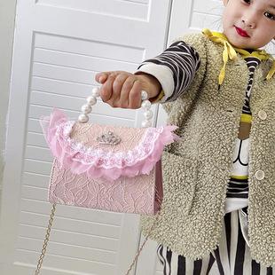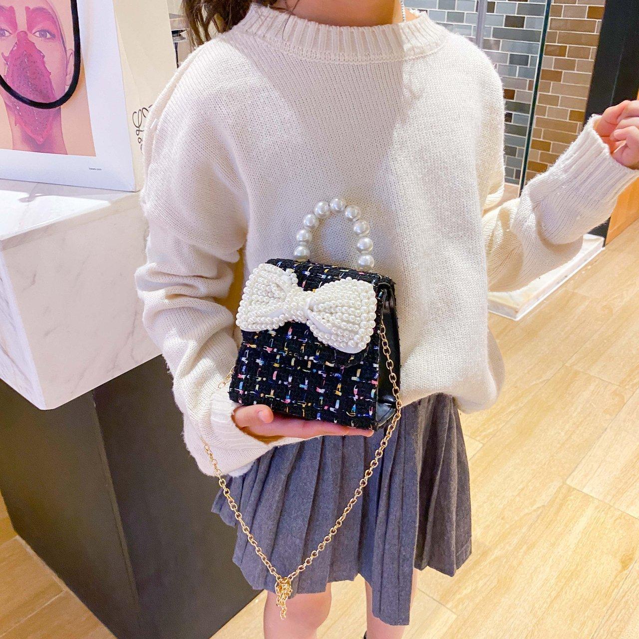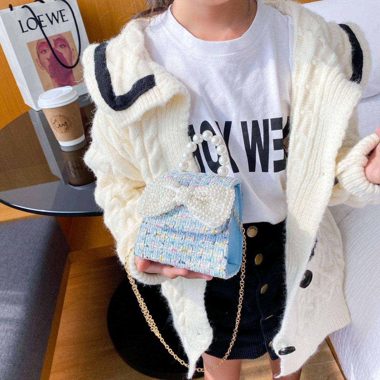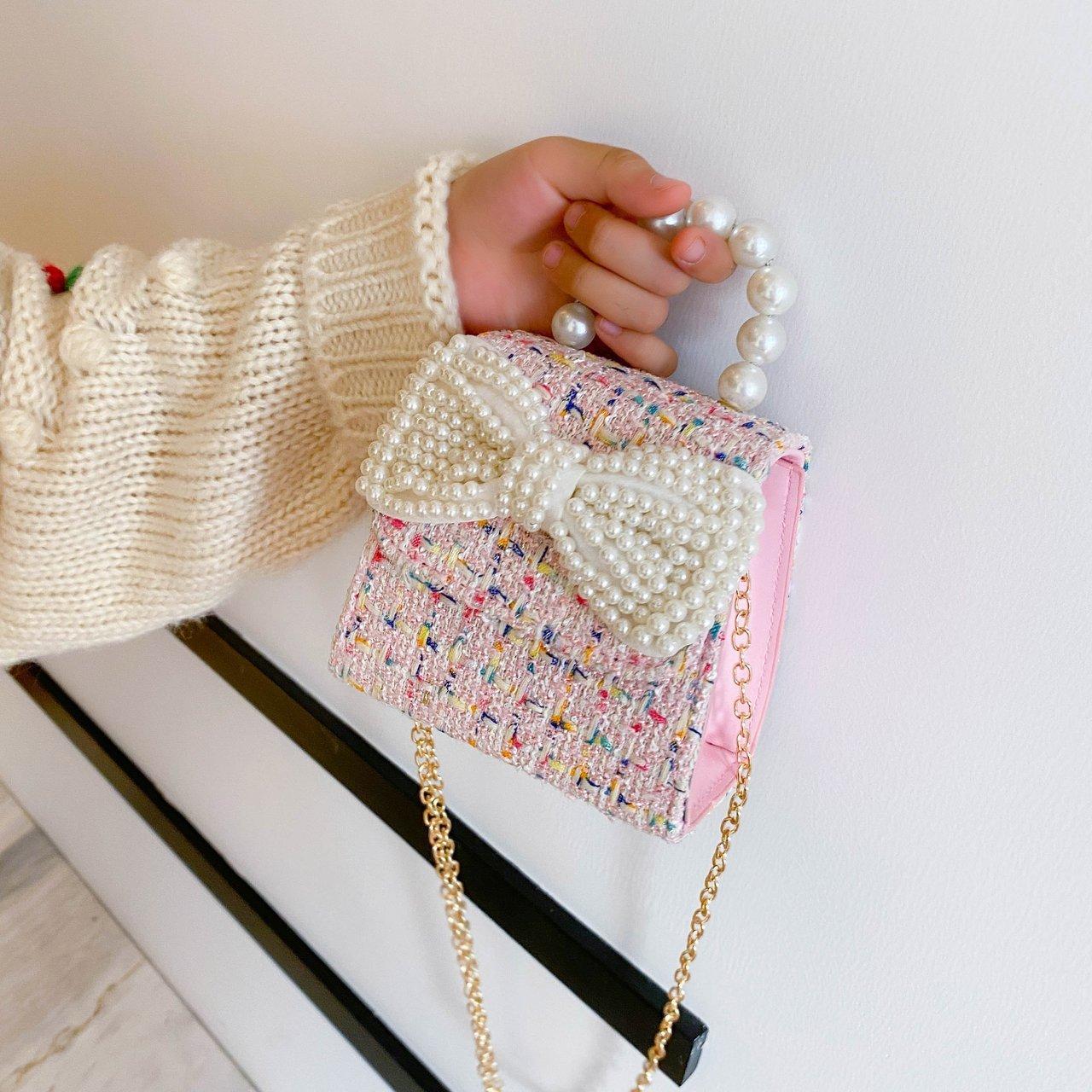 2025 Bolsos Nuevos para Niños Lindo Bolso de Hombro de Mano con Perlas para Niñas Mini Bolso de Accesorios de Princesa Bolso Cruzado