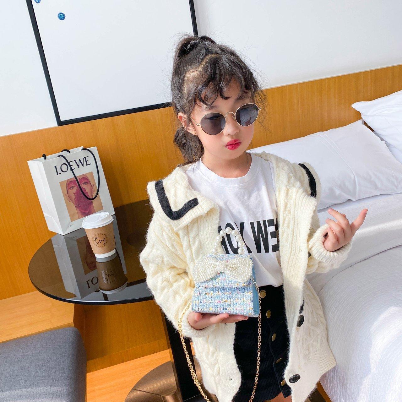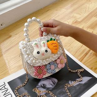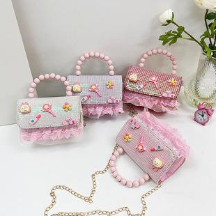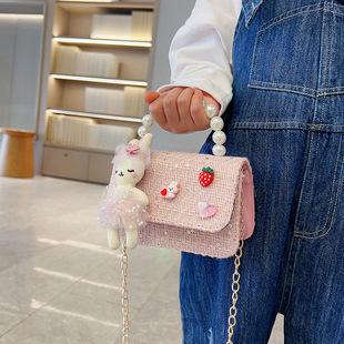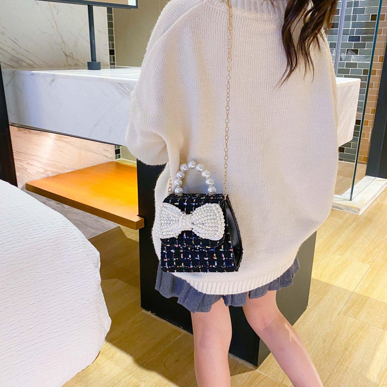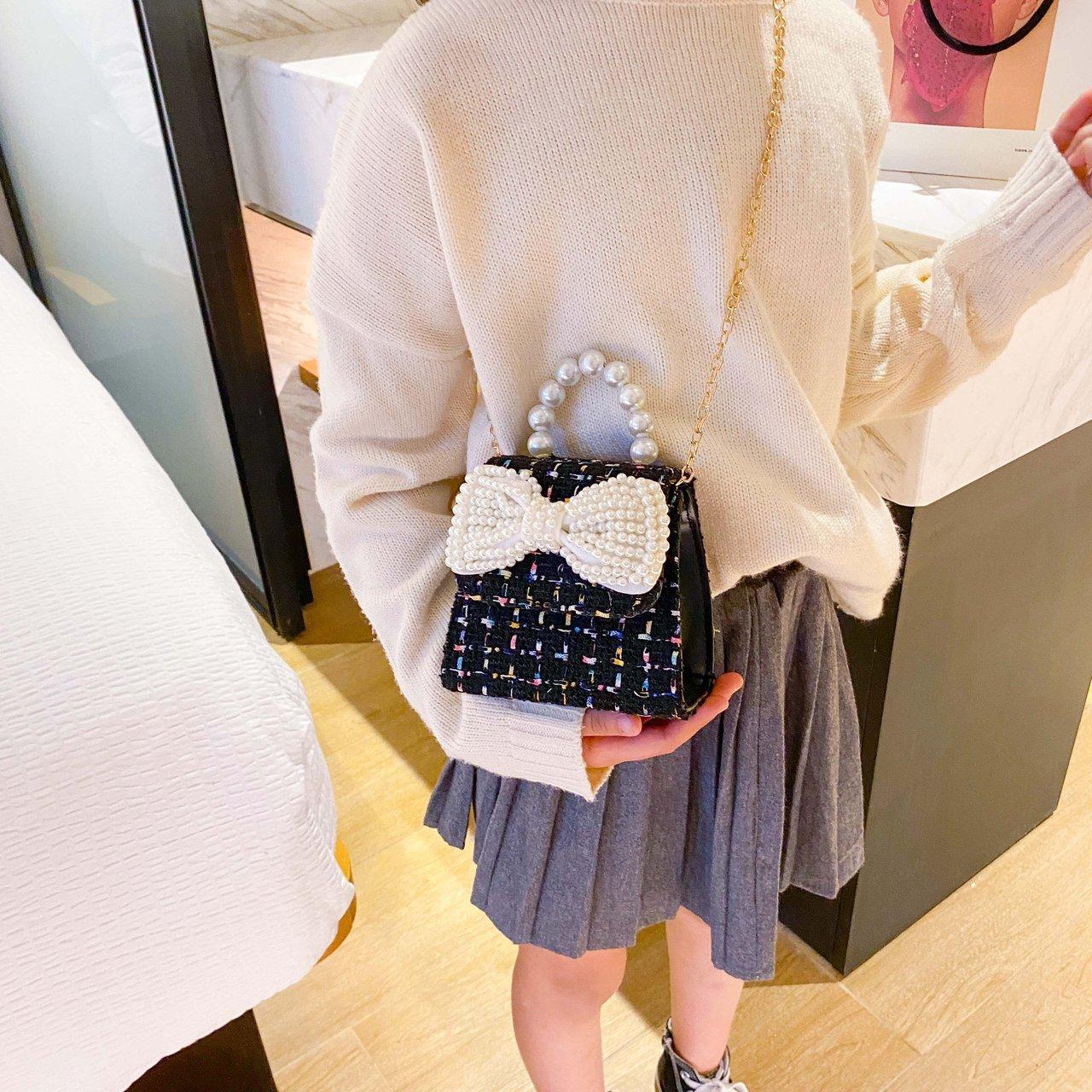 2025 Bolsos Nuevos para Niños Lindo Bolso de Hombro de Mano con Perlas para Niñas Mini Bolso de Accesorios de Princesa Bolso Cruzado
