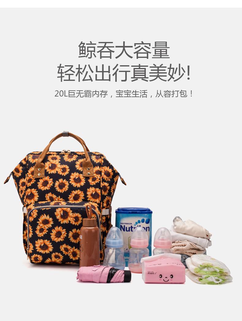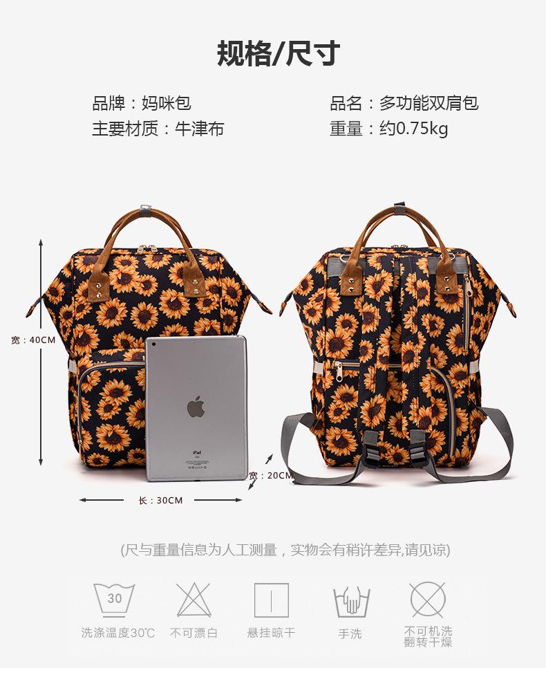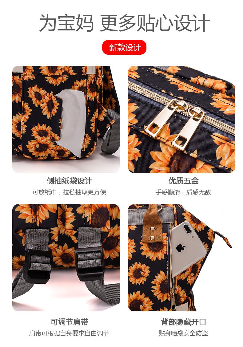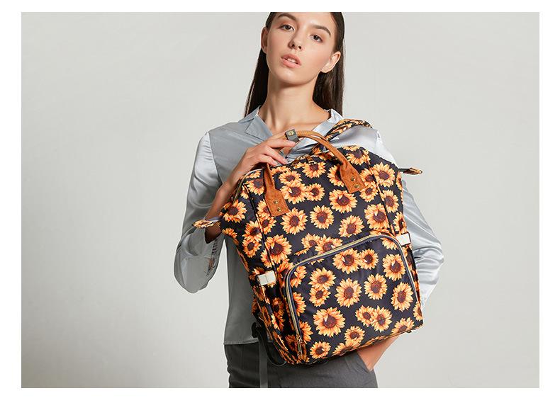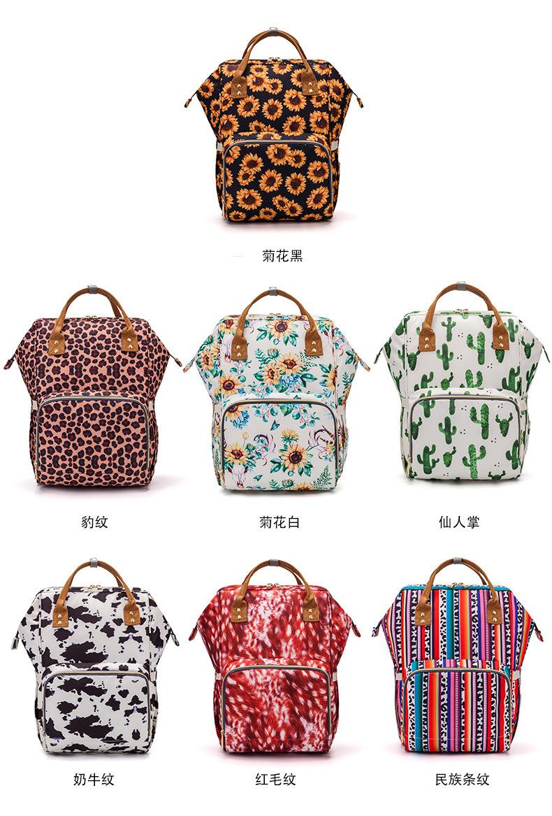 Mochila Doble Popular de Moda Transfronteriza para Madre y Bebé, Nylon Estampado para Salir, Bolsa de Mamá, Bolsa de Pañales Portátil Multifuncional