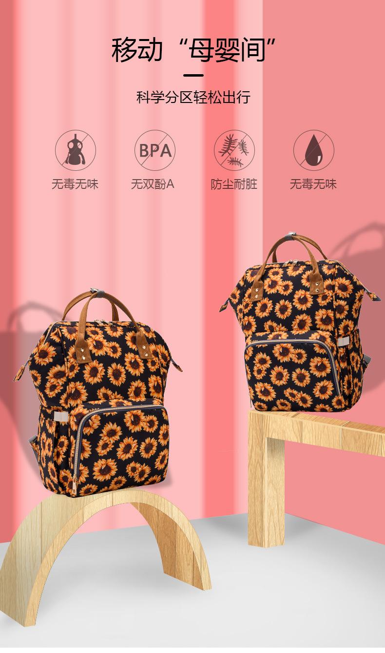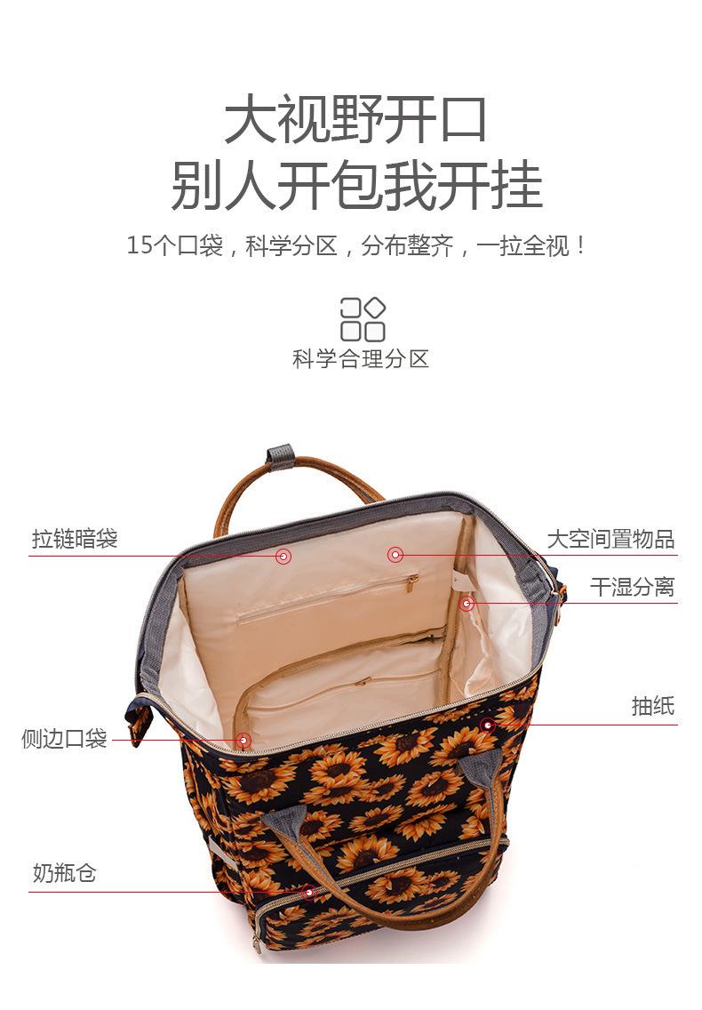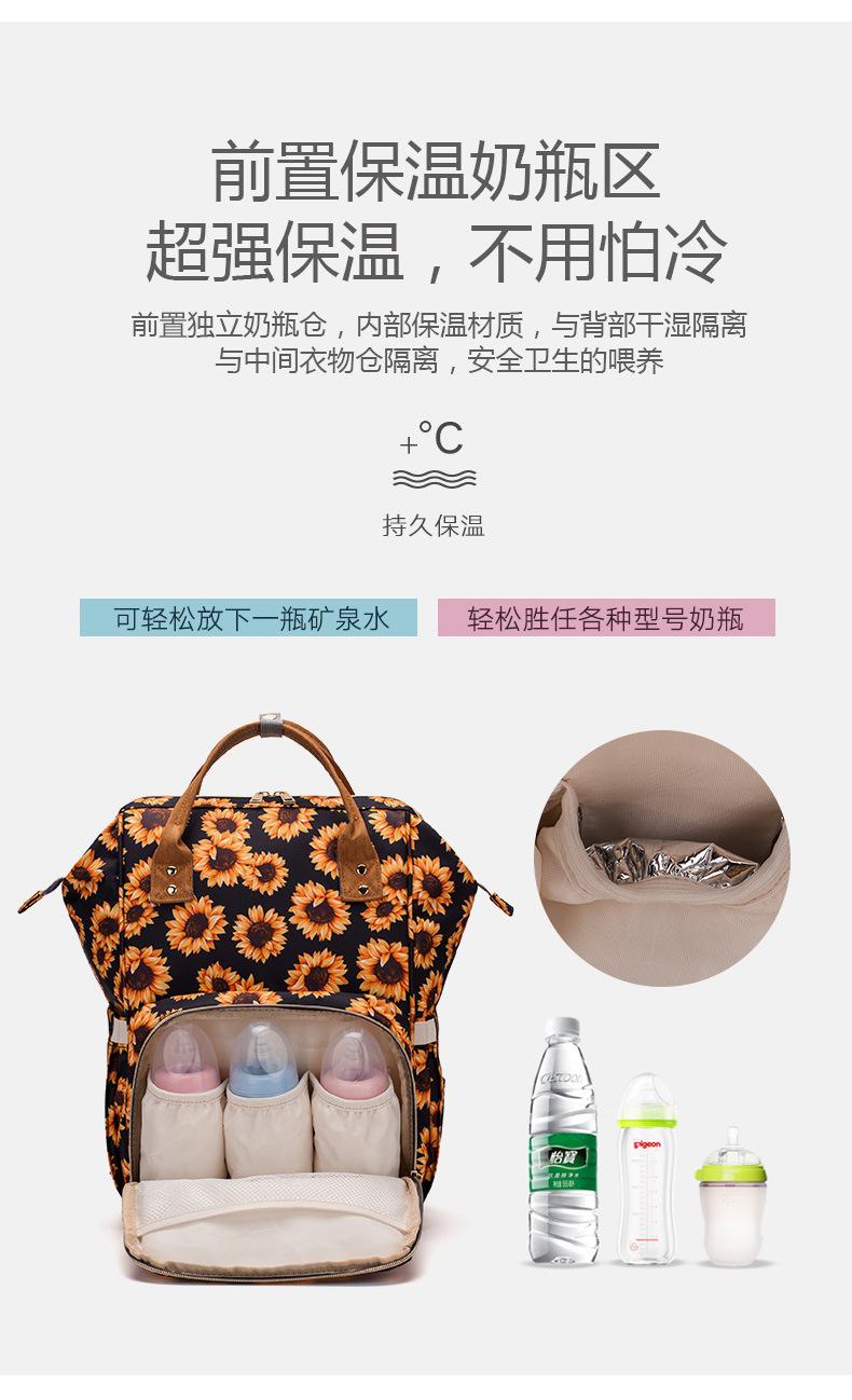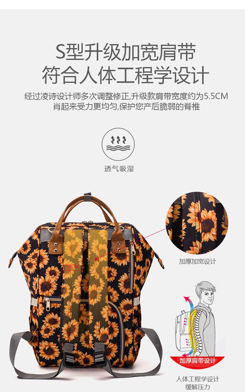 Mochila Doble Popular de Moda Transfronteriza para Madre y Bebé, Nylon Estampado para Salir, Bolsa de Mamá, Bolsa de Pañales Portátil Multifuncional