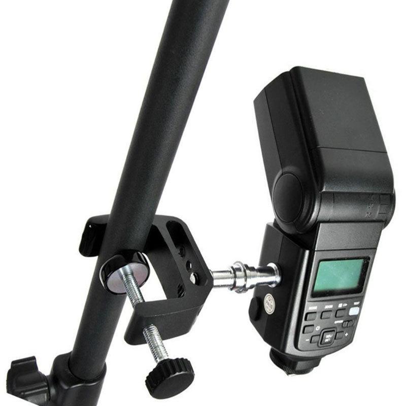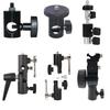 El clip de fijación multifuncional es compatible con la caja de batería colgante y se puede usar con el adaptador para soporte de iluminación para instalar el flash, lo que permite ampliar la fuente de luz en múltiples ángulos. Es ampliamente utilizado en fotografía. Es compatible principalmente con diversas cajas de batería colgantes y se puede usar con el adaptador para soporte de iluminación (se vende por separado) para instalar diversos flashes. Los múltiples orificios de montaje del soporte permiten ajustar el ángulo de montaje a voluntad. El ajuste con perilla de tornillo es fácil de usar.