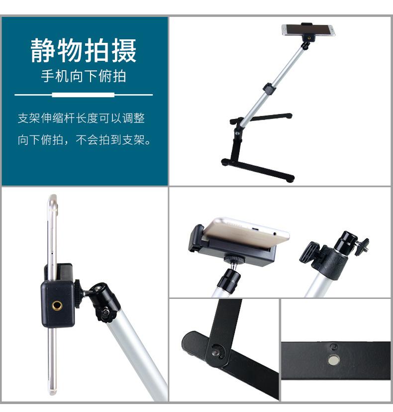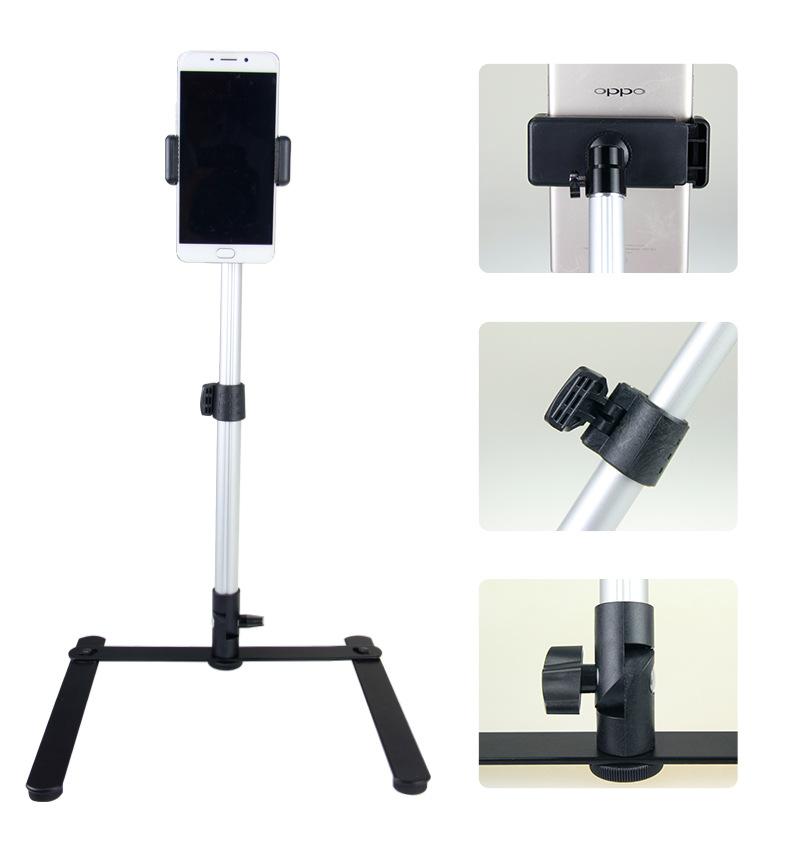 Soporte de Escritorio para Teléfono Móvil, Soporte para Disparo Cenital de Aleación de Aluminio, Luz Inteligente para Transmisión en Vivo, Soporte Plegable Perezoso para Teléfono para Fotografía
