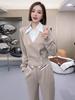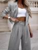 Traje de pantalón recto con solapa corta a rayas informal elegante para mujer de comercio exterior europeo y americano 2024