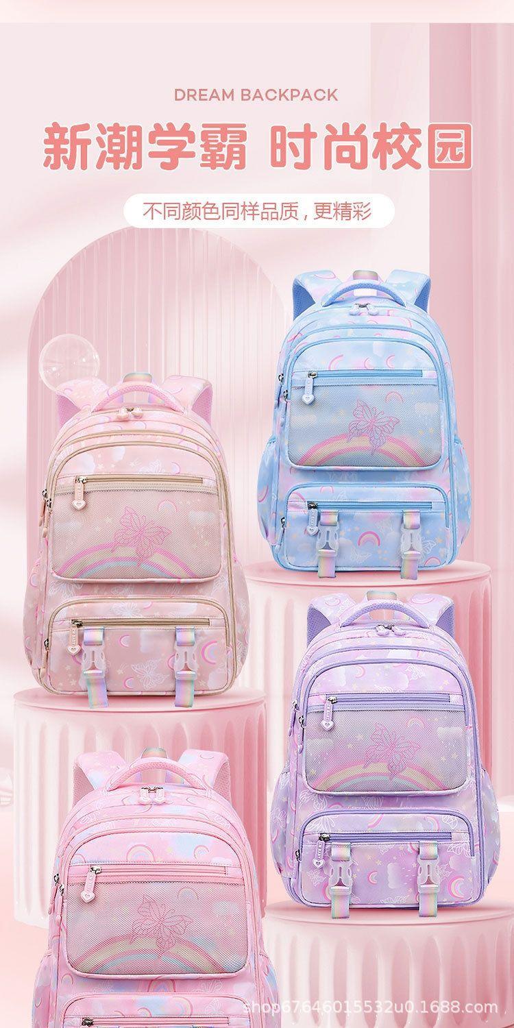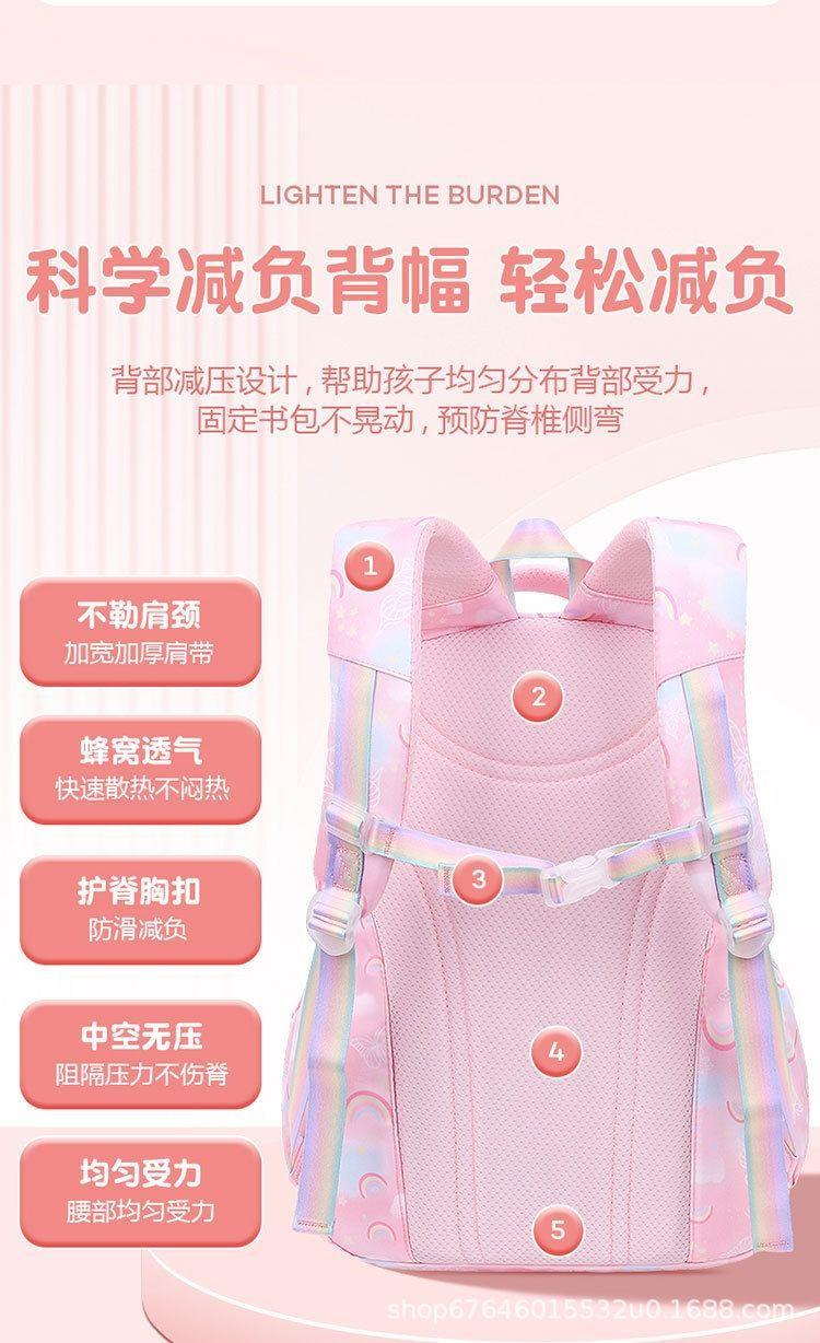 Mochila escolar estudiante de primaria sueño grado uno tres a seis niñas estudiante de secundaria mochila ultraligera reducción de carga protección de la columna vertebral mochila