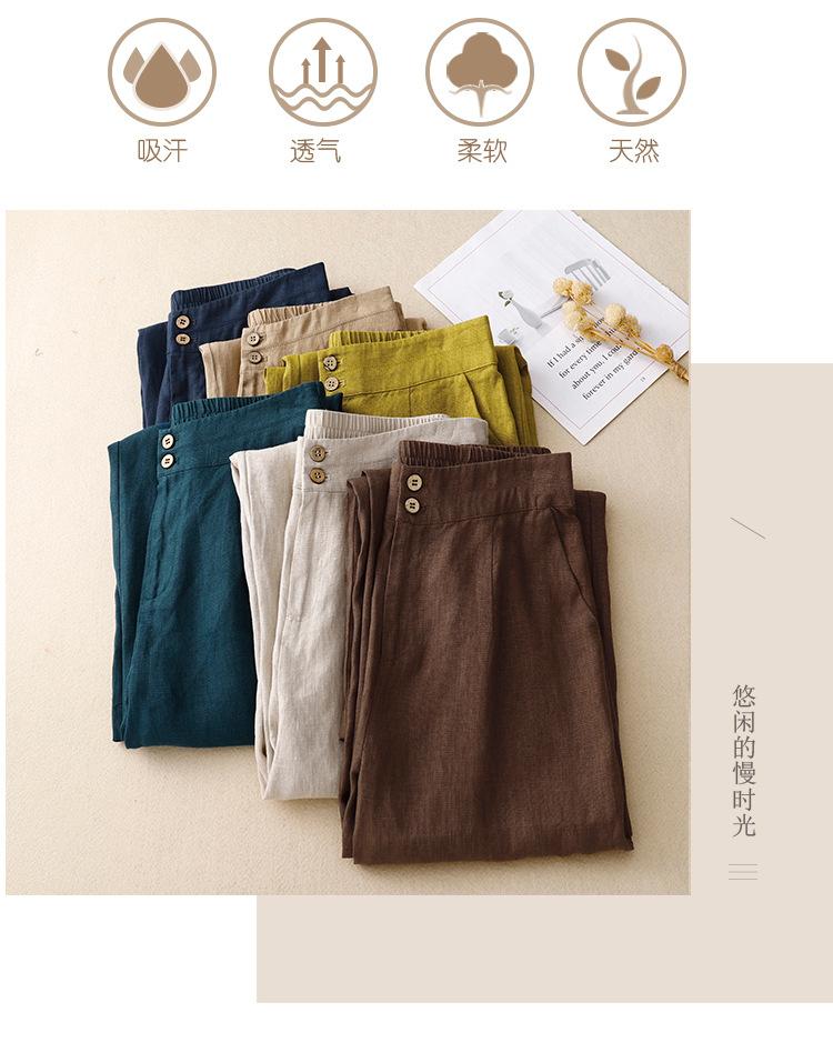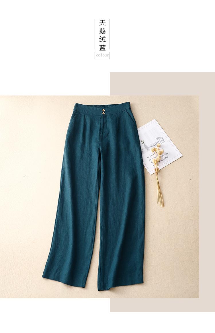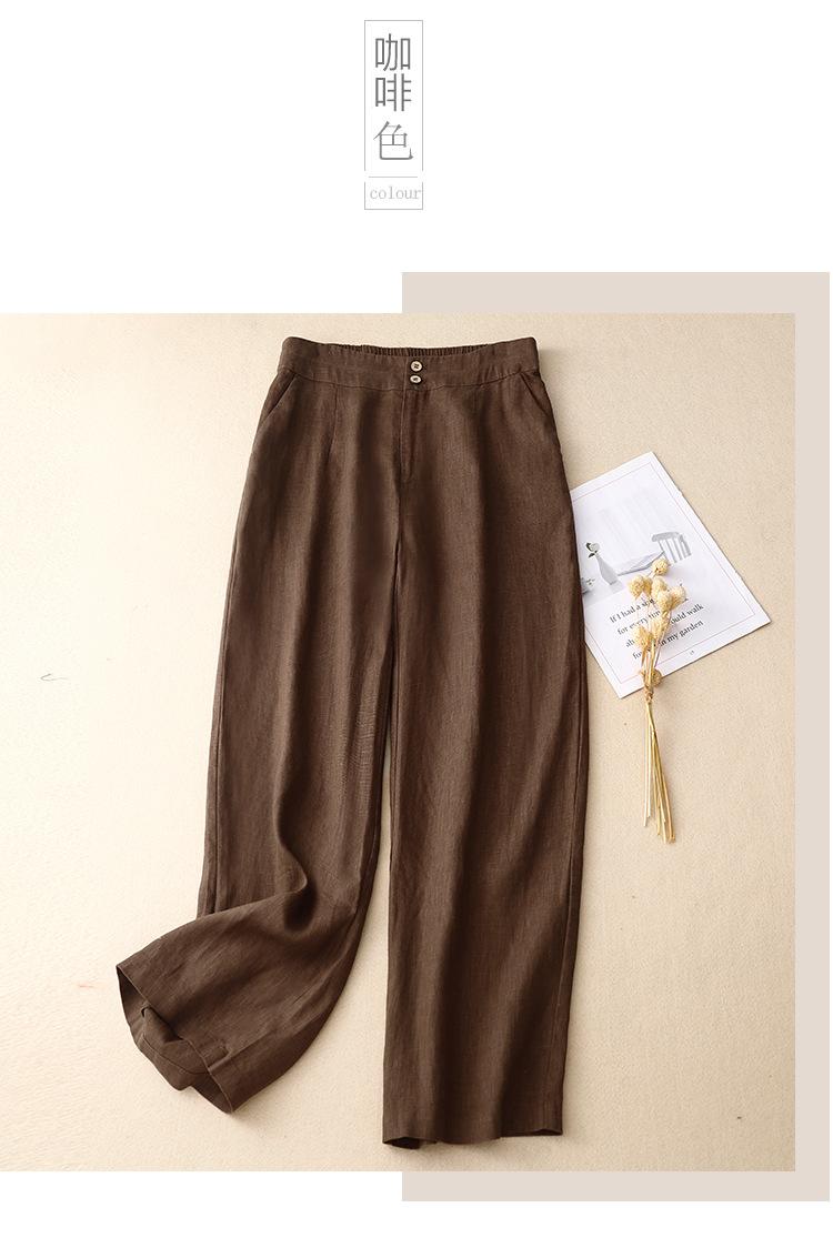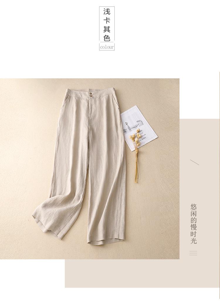 Foto Real de Pantalones Anchos de Lino para Mujer 2025 Nuevos Pantalones Casuales Verano Pantalones Rectos Adelgazantes Versátiles Pantalones de Lino para Mujer