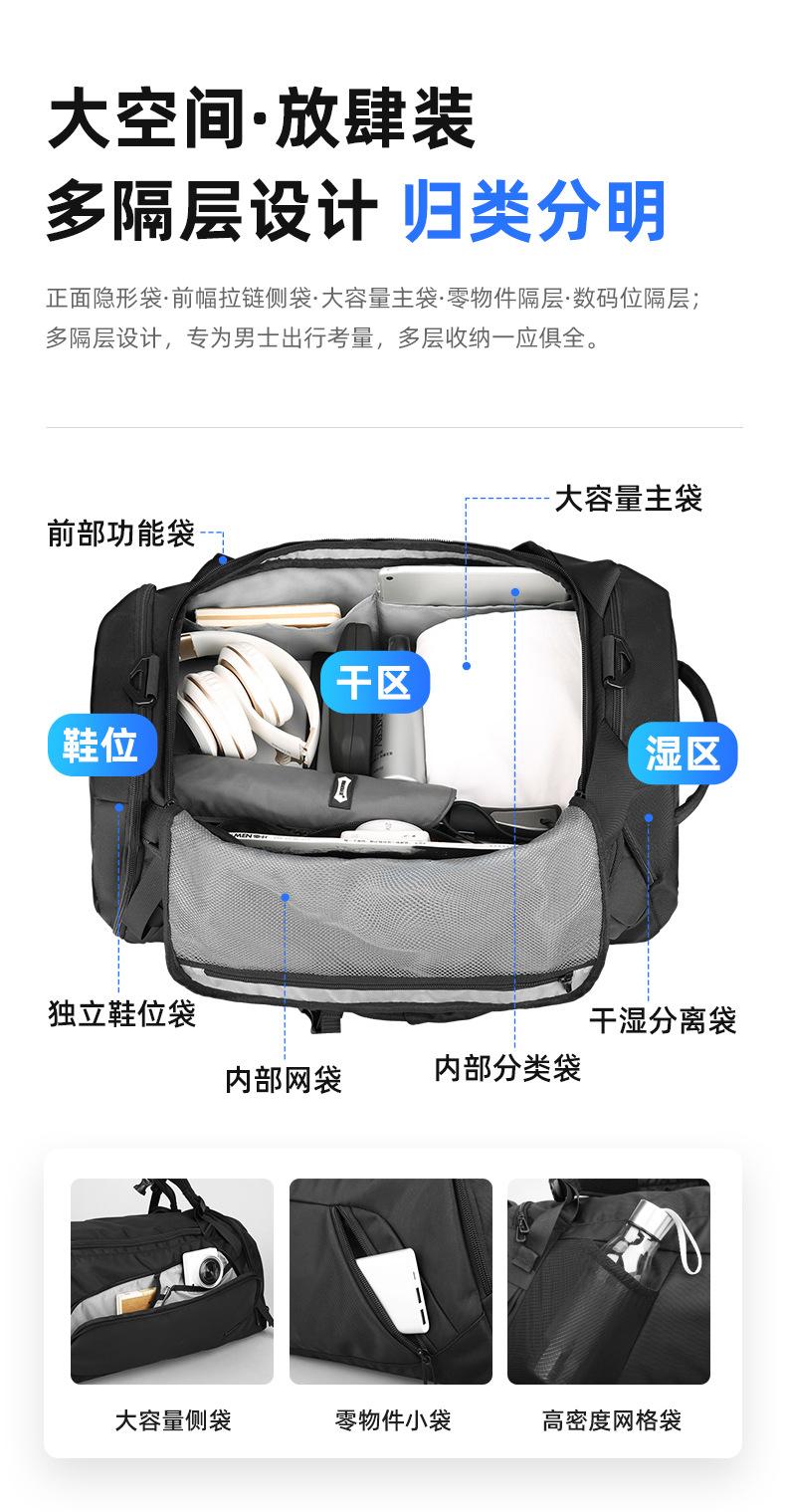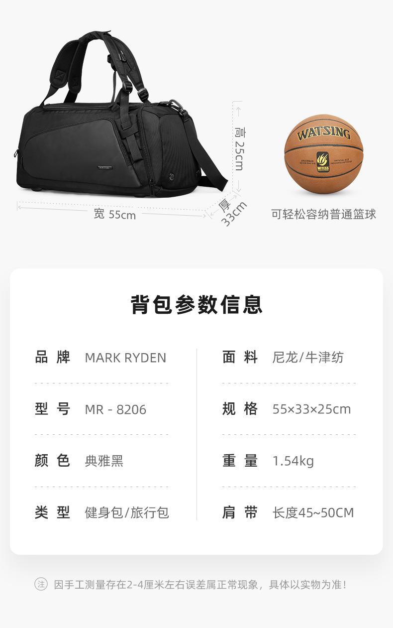Bolso Satchel de Viaje Mark Ryden Impermeable de Gran Capacidad para Viaje de Negocios, Bolsa de Equipaje con Separación Seca y Húmeda, Bolsa Deportiva de Fitness para Hombre