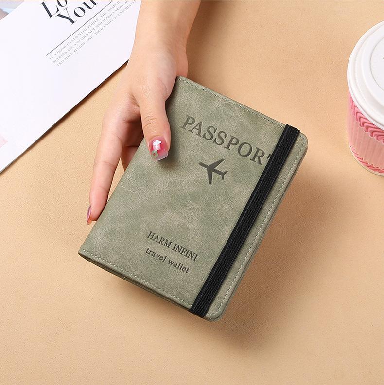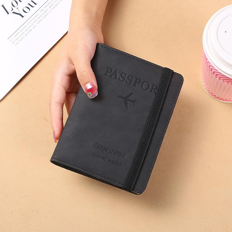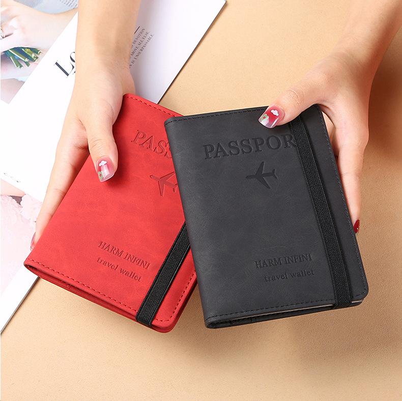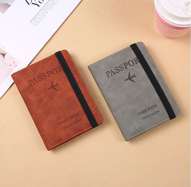 Bolsa para pasaporte RFID de cuero PU, multifuncional, con ranuras para tarjetas SIM y funda de cuero para pasaporte, disponible en stock.