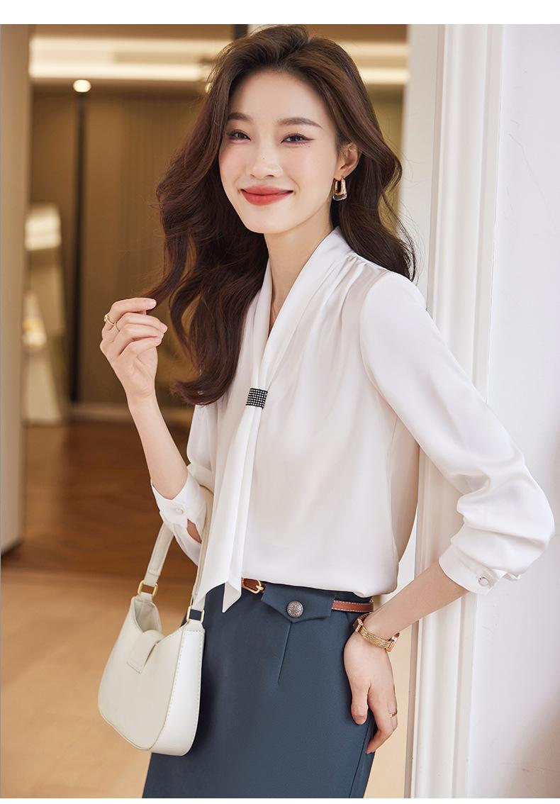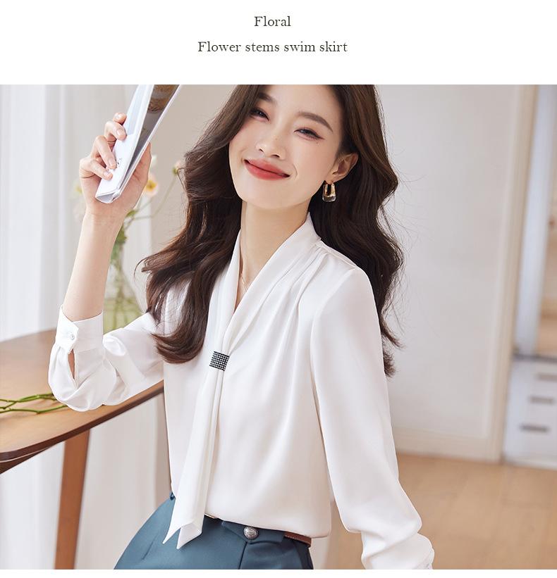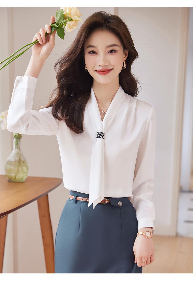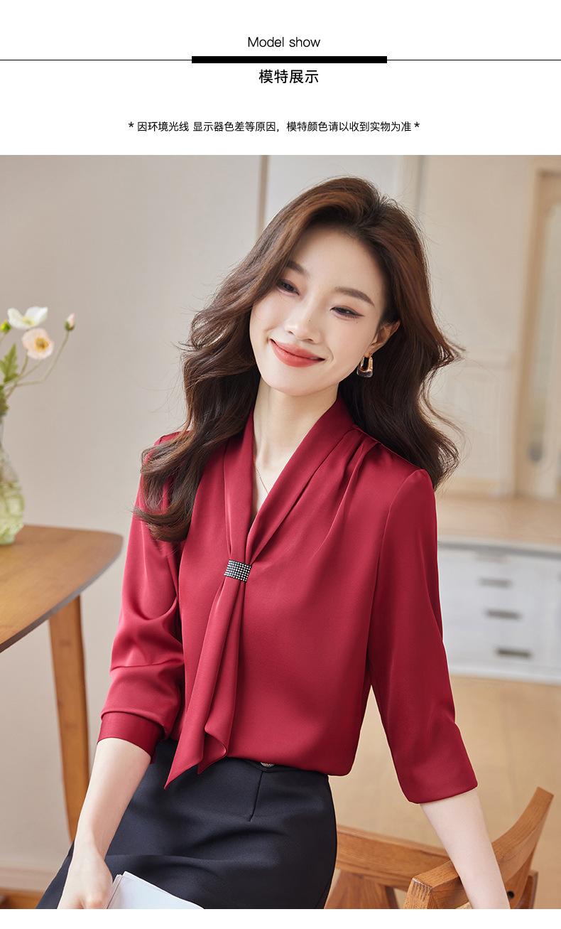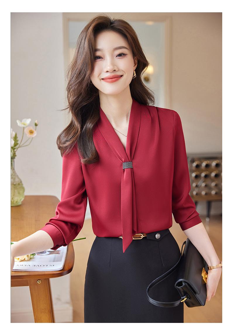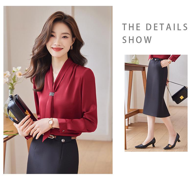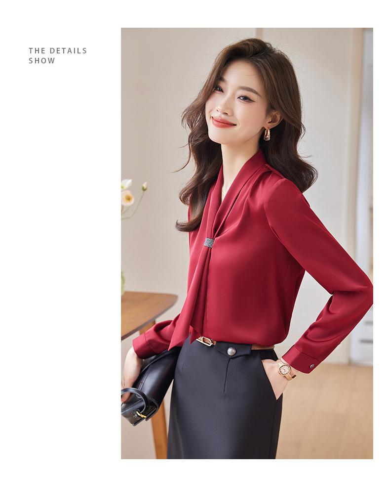 Blusa de satén de acetato para mujer, manga larga, otoño 2023, nueva camisa de mujer, cuello en V, color vino tinto, moda estilo occidental.
