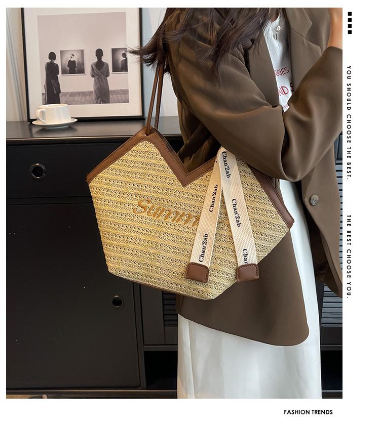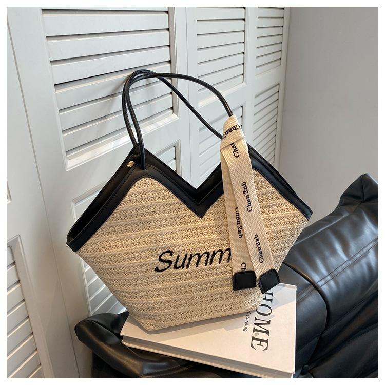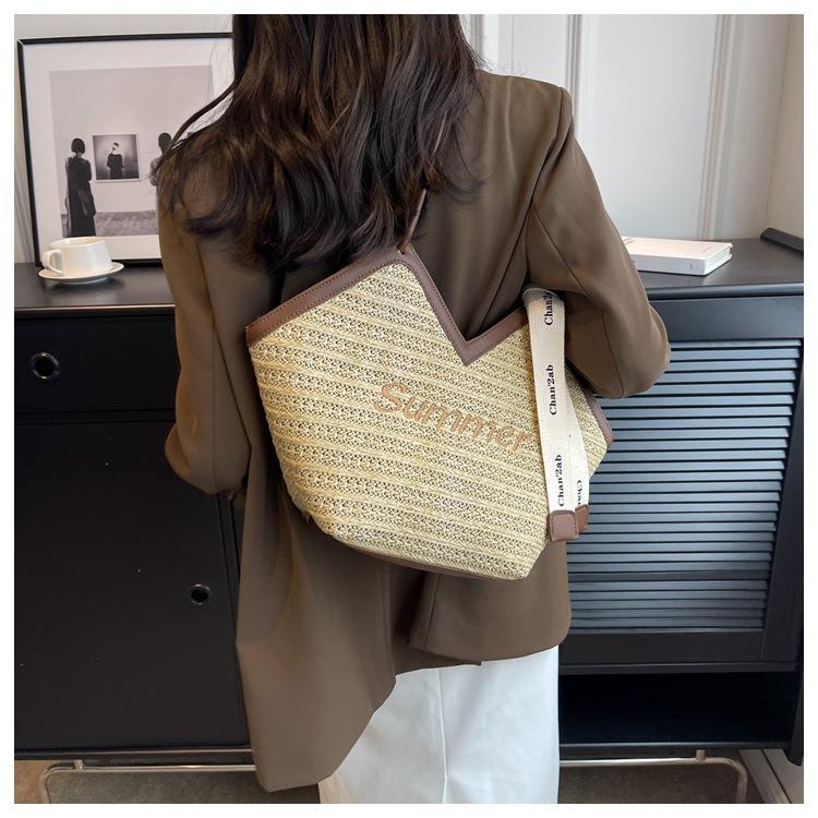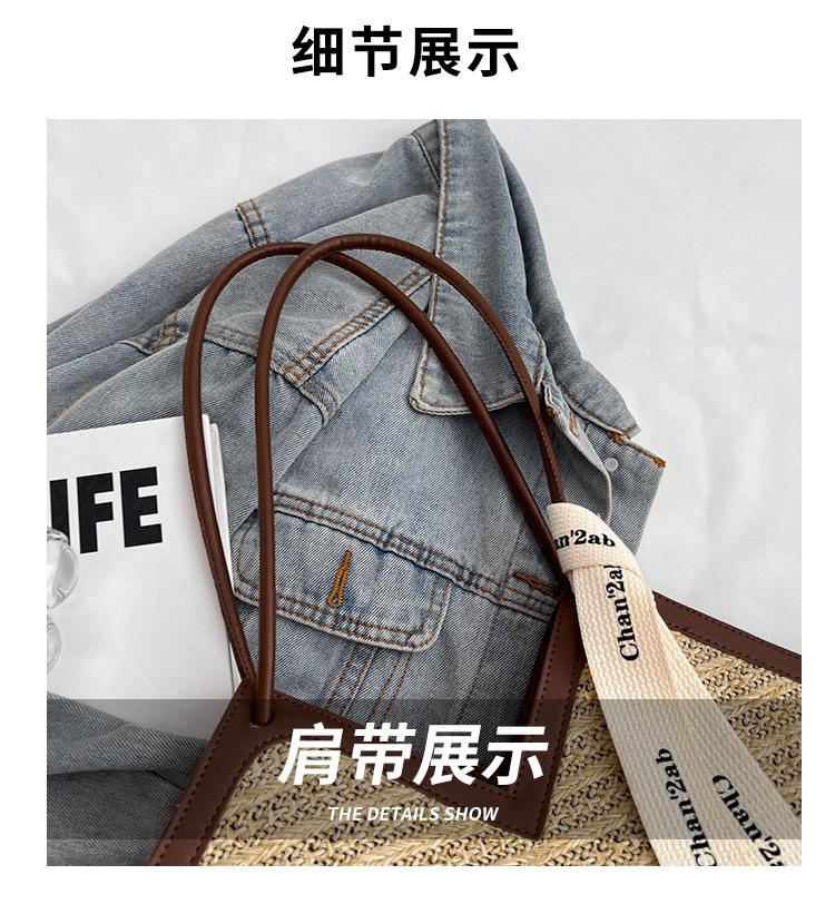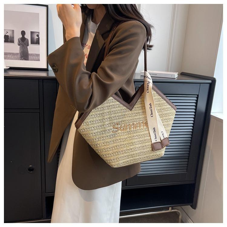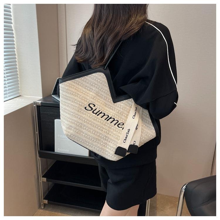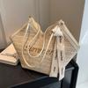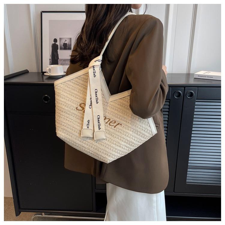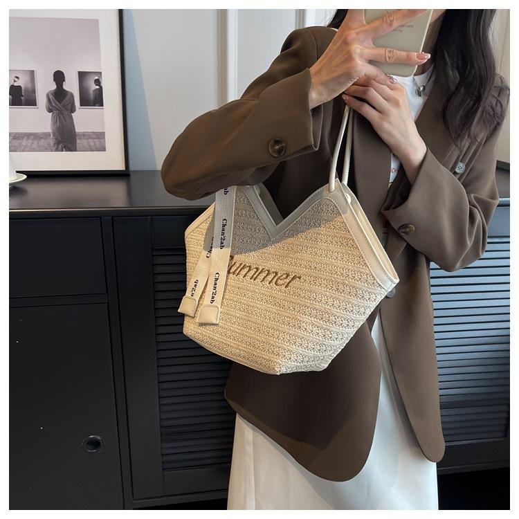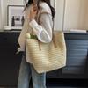 Bolso de Paja para Mujer de Gran Capacidad 2025 Nuevo Verano Versátil Hombro Tejido Textura Popular Bolso Tote para Viajero