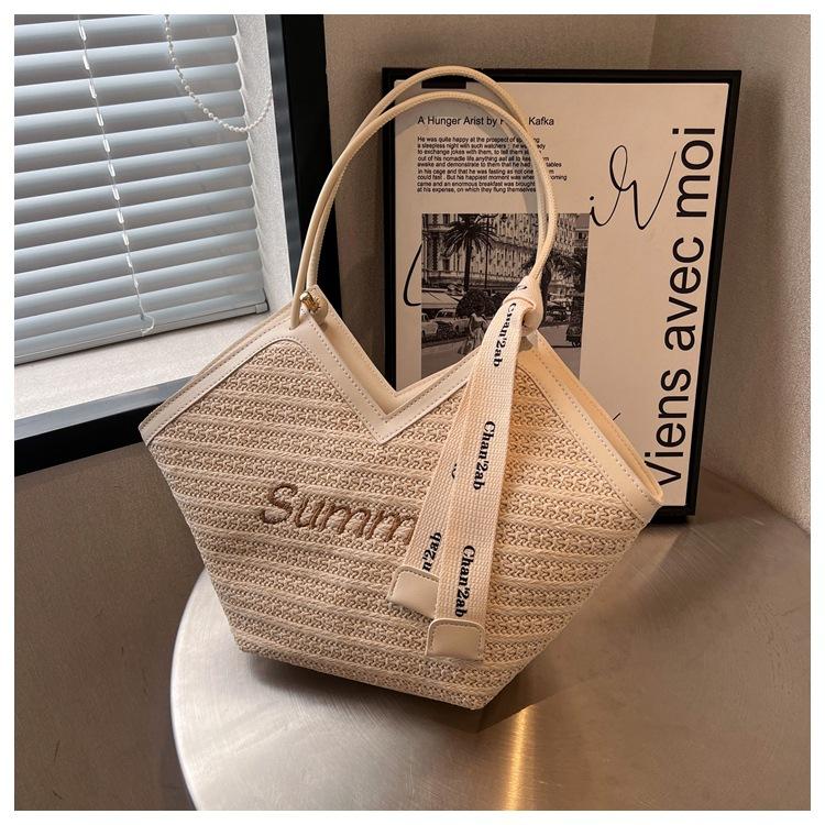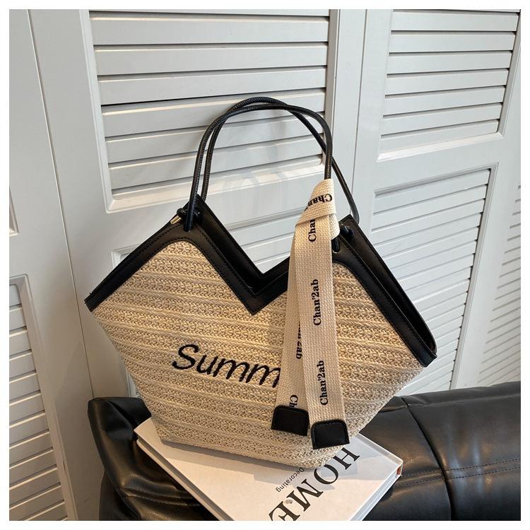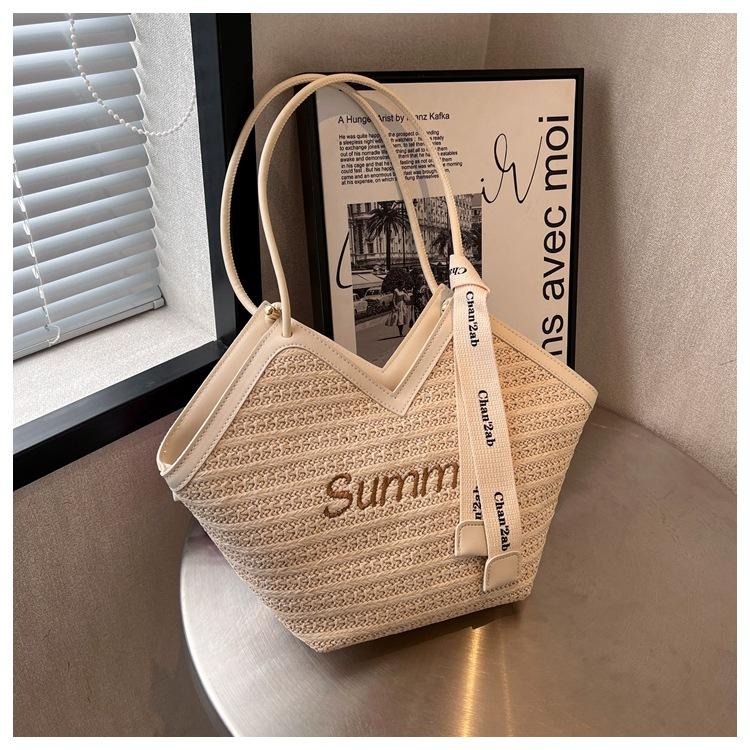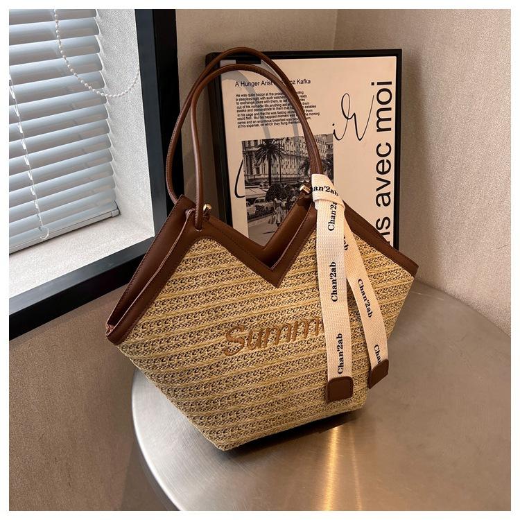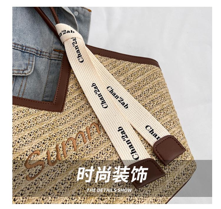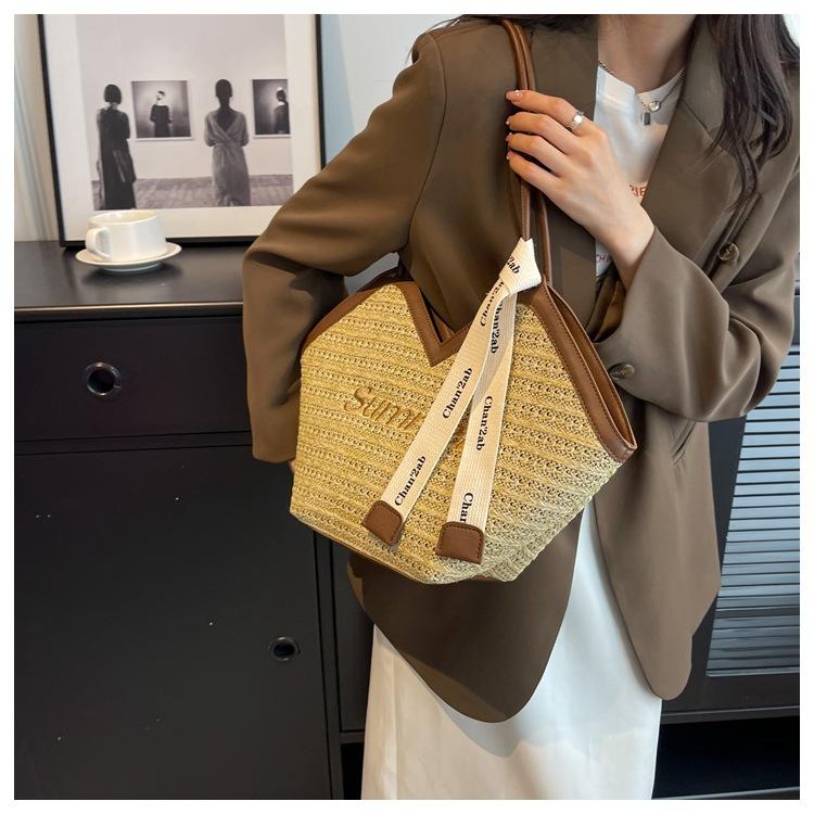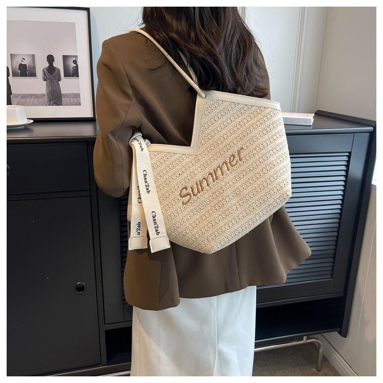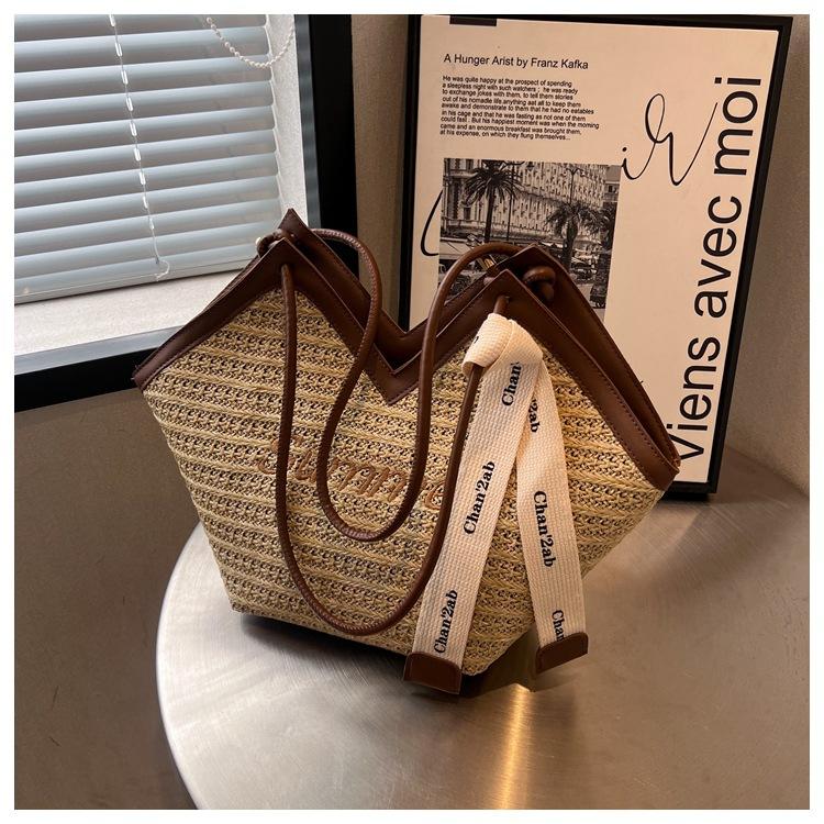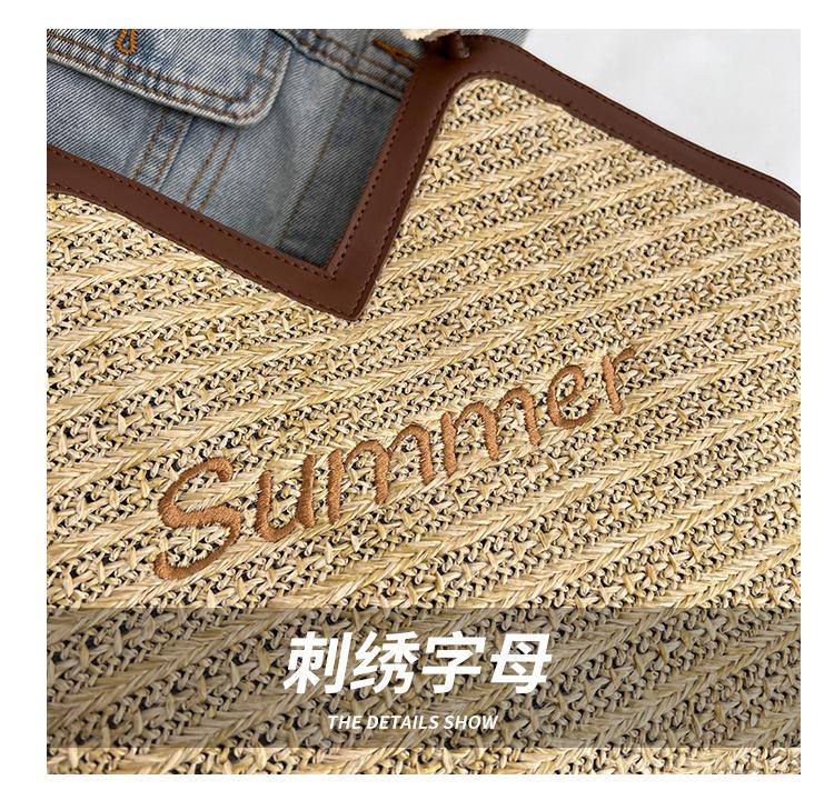 Bolso de Paja para Mujer de Gran Capacidad 2025 Nuevo Verano Versátil Hombro Tejido Textura Popular Bolso Tote para Viajero