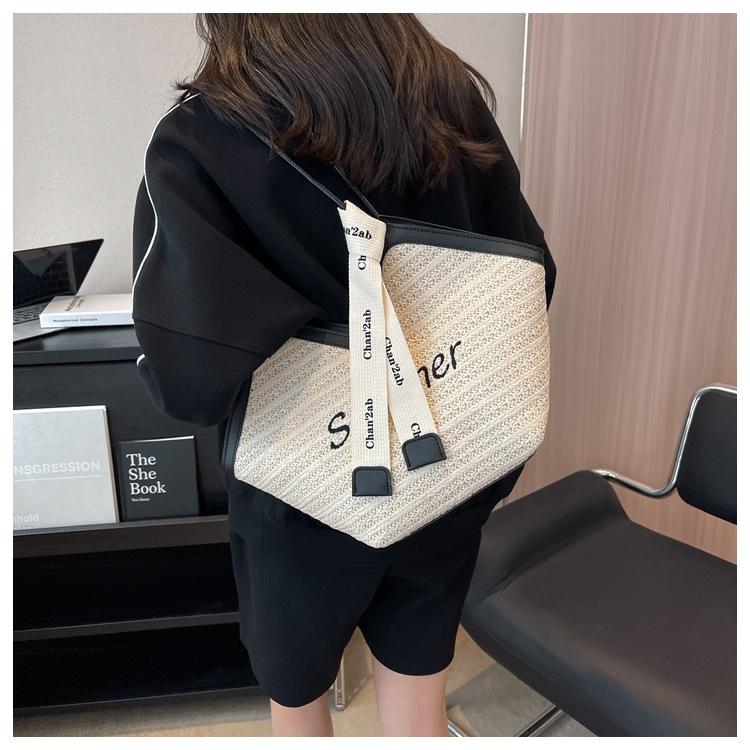 Bolso de lona para mujer, gran capacidad, 2024, nueva textura, color contrastante, bolso bandolera de verano, bolso de mano popular para ir al trabajo