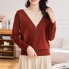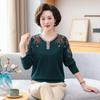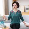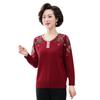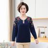 Playera de Manga Larga para Mujer de Mediana Edad Cuello Redondo Bordada Moda Madre Cuello Redondo Suéter Tejido Otoño e Invierno Cálida Camiseta Base Suéter
