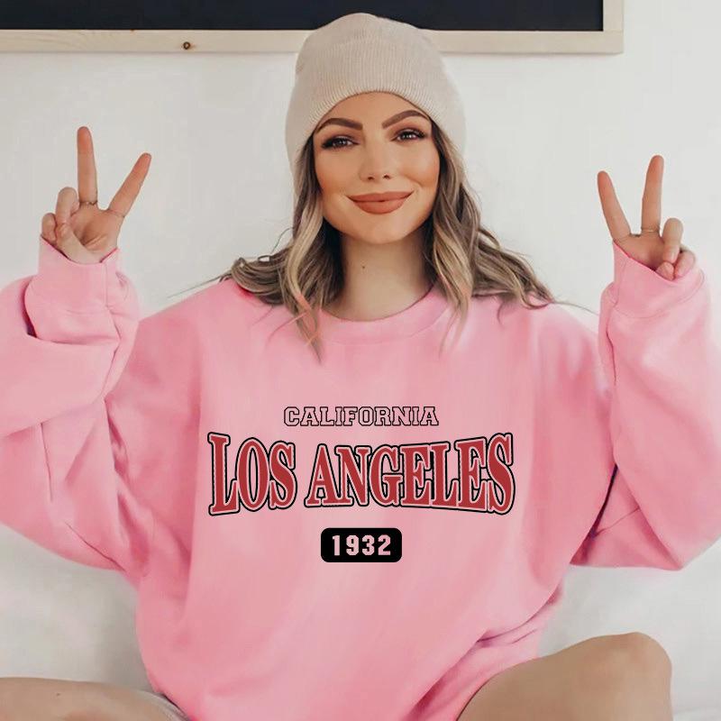 Suéter de comercio exterior con estampado de letras sueltas y cuello redondo con forro polar y manga larga para mujer, nueva moda de otoño e invierno, productos europeos