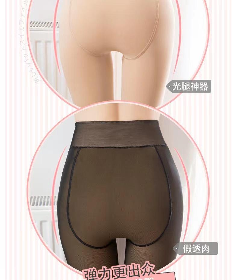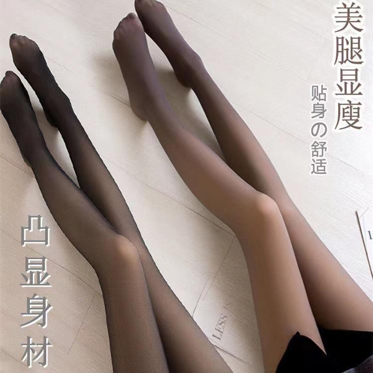 Pantalones transparentes de una pieza de color gris de azafata con forro polar, medias transparentes falsas, artefacto de pierna ligera, medias negras para mujer, primavera, otoño e invierno.