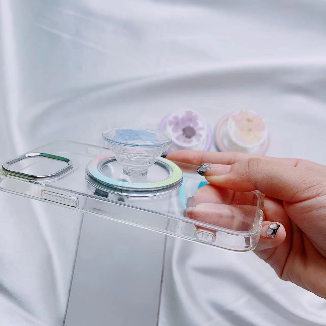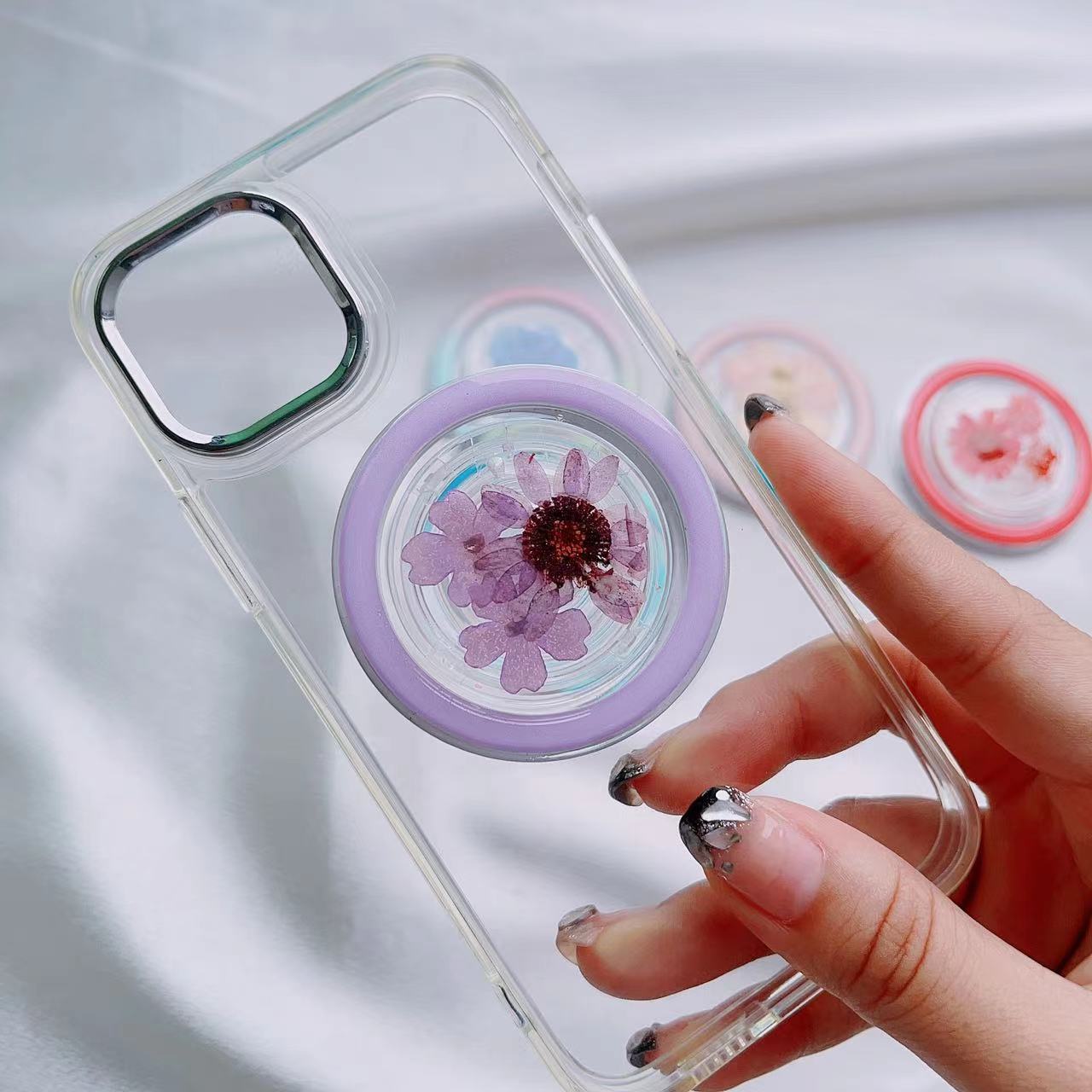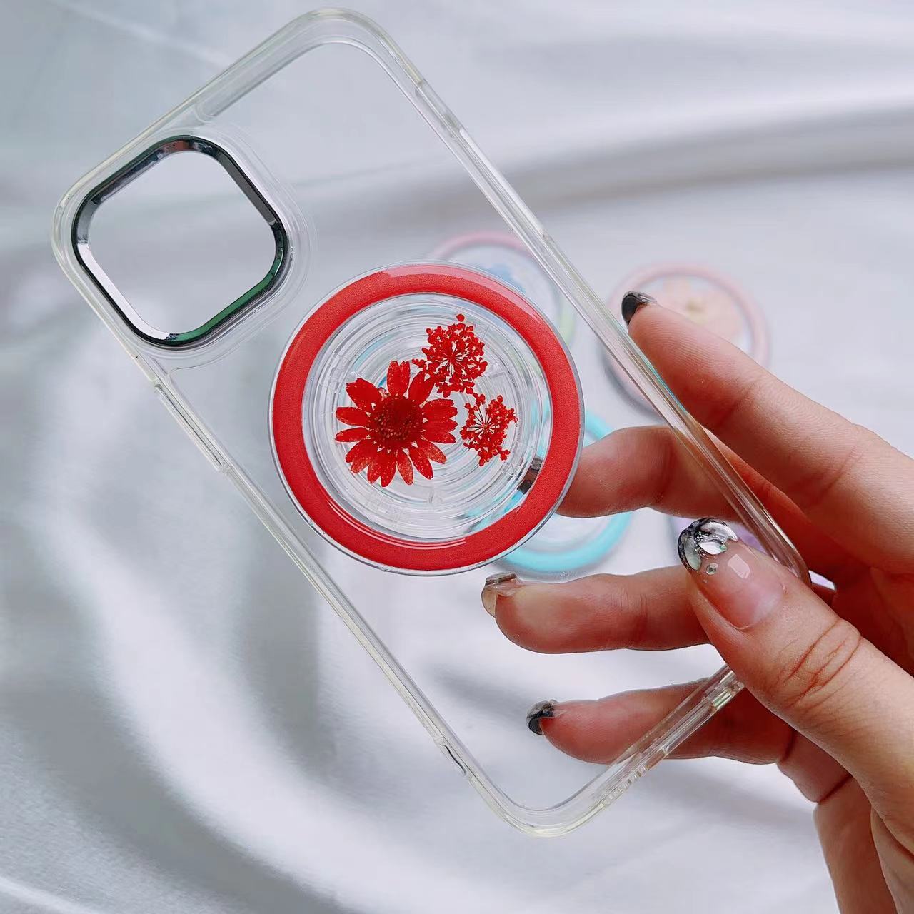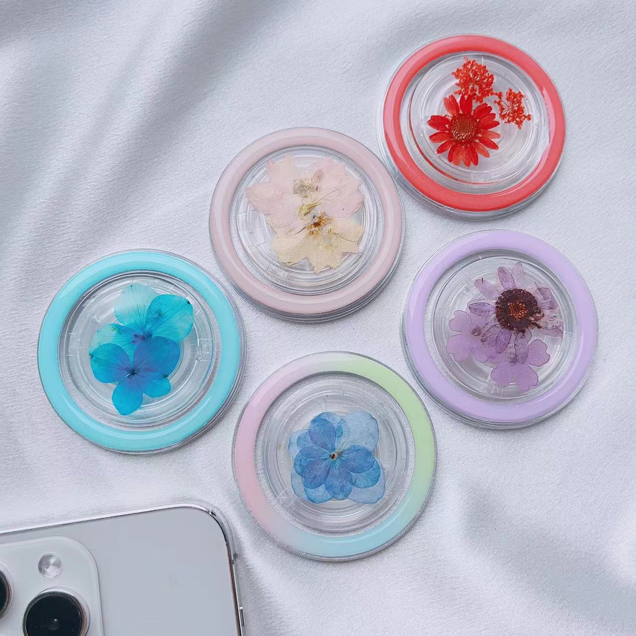 Soporte Retráctil y Plegable Lazy Portátil con Bolsa de Aire Magnética Flor Real Flor Seca Pegamento Soporte de Escritorio para Teléfono Móvil