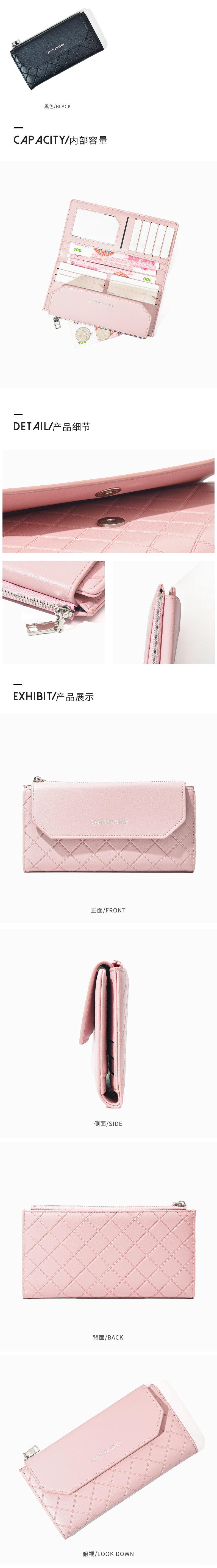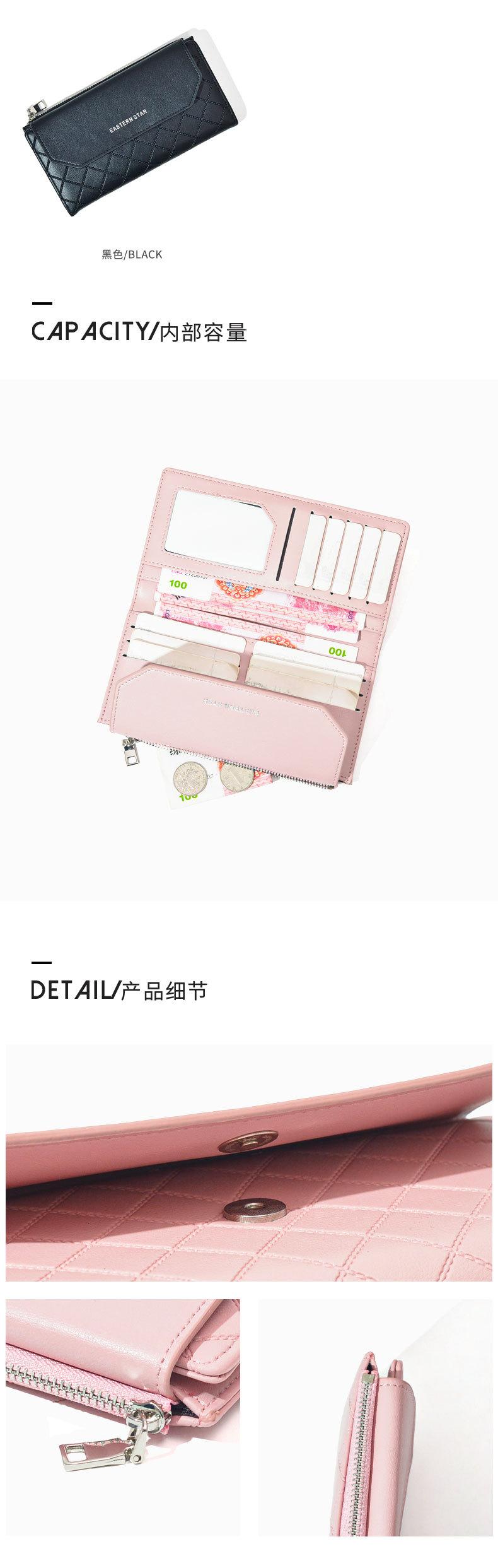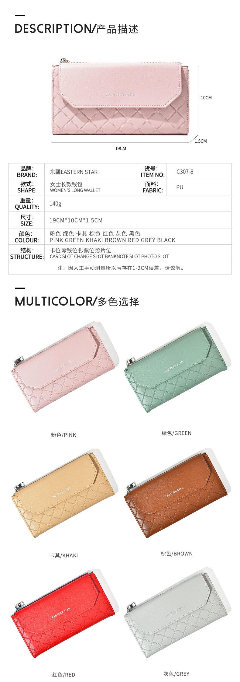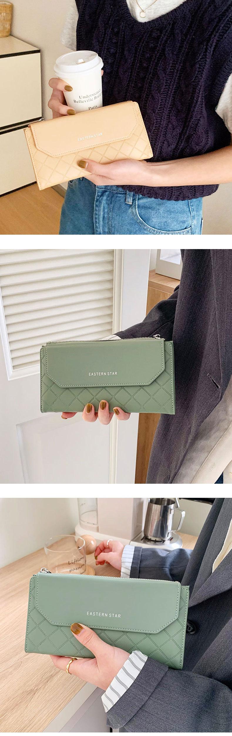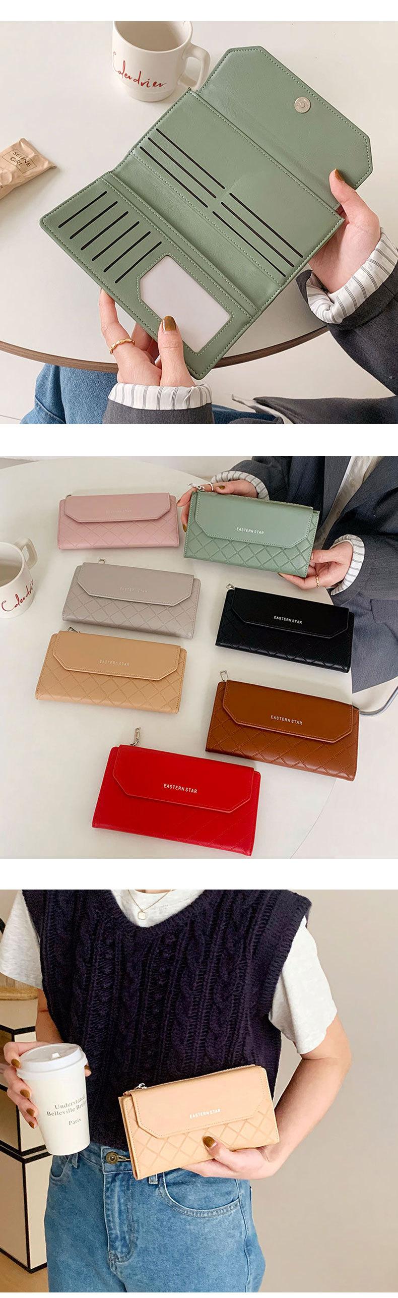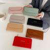 Cartera sencilla de estilo coreano, cartera larga para mujer, cartera de color liso a la moda al por mayor, tarjetero con dos descuentos y clip largo.