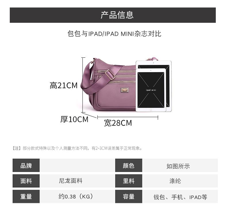 Nuevo bolso cruzado de nailon para mujer, moderno, con contraste, de gran capacidad, multicapa, sencillo, para madres de mediana edad.