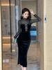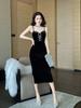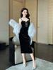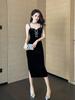 Estilo Lujuria Pura Sexy Falda de Cadera Chica Caliente Otoño 2025 Nuevo Vestido Delgado de Terciopelo con Tirantes para Mujer 9680
