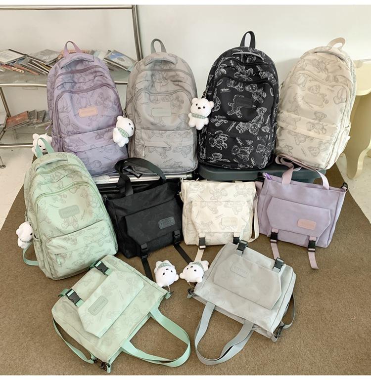 White backpack, Black backpack, Gray backpack, Green backpack, Purple backpack, White crossbody bag, Black cro...