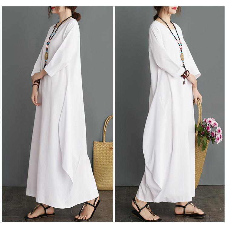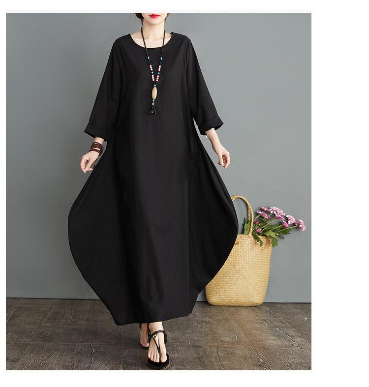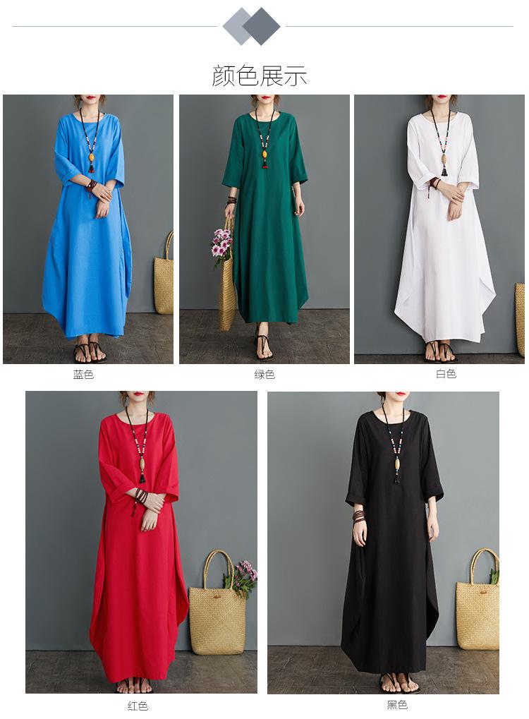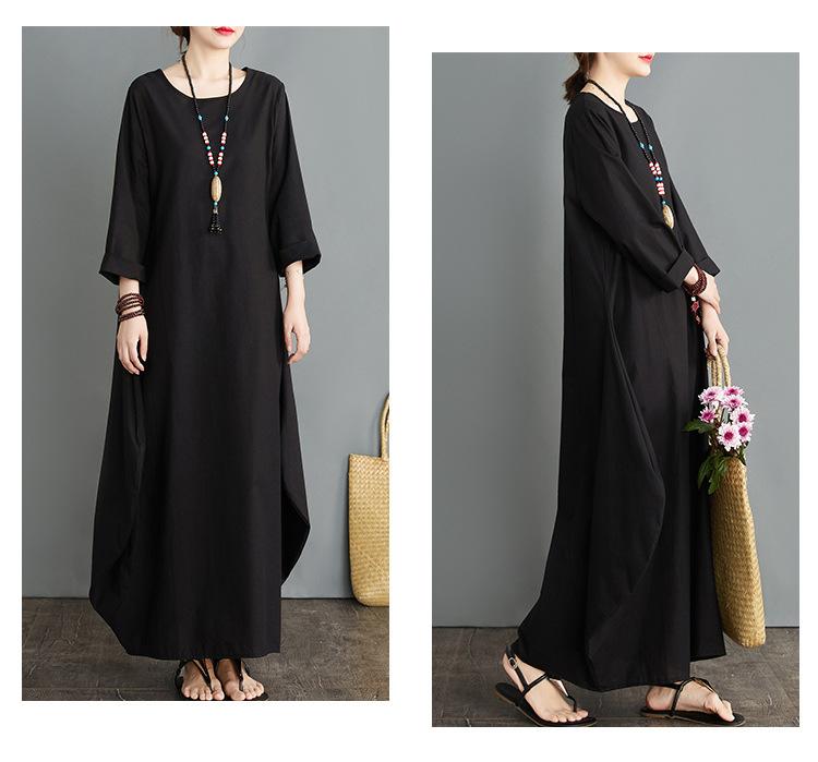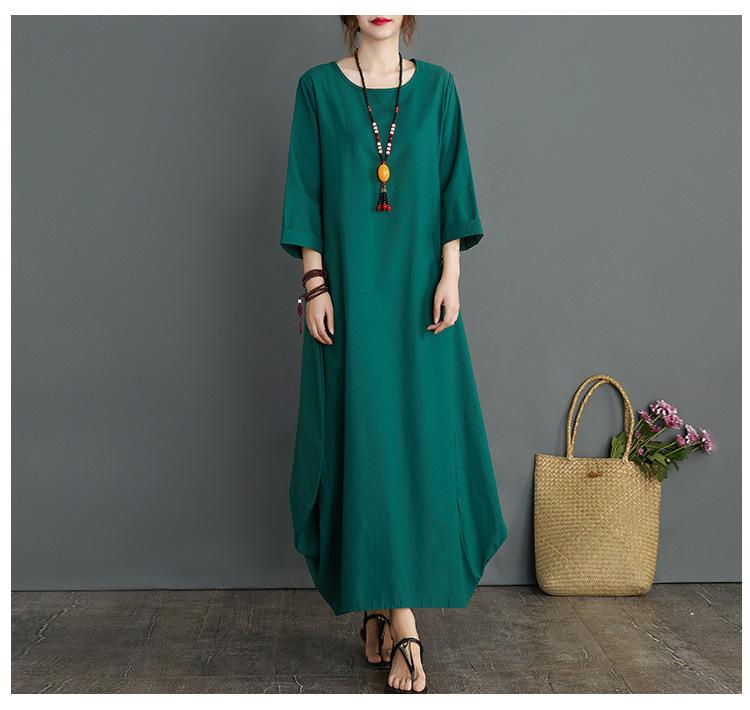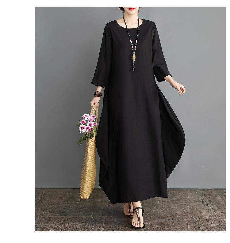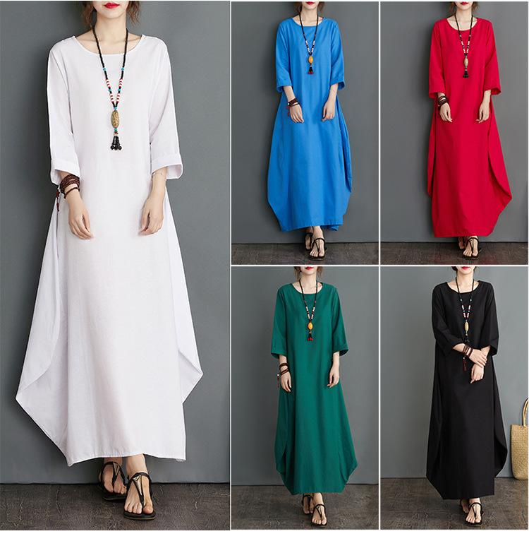 Nuevo 2024 Amazon Aliexpress Wish Popular Suelto Talla Grande Algodón y Lino Vestido Falda Larga