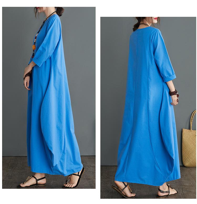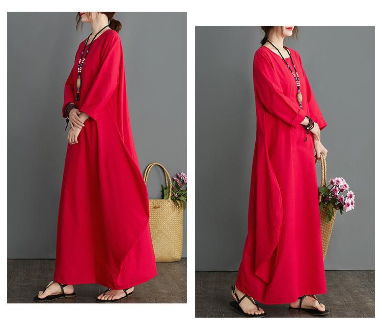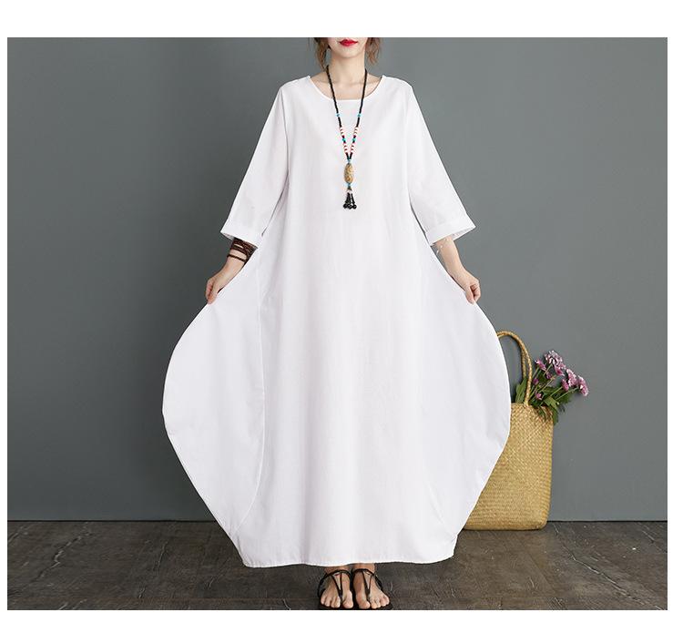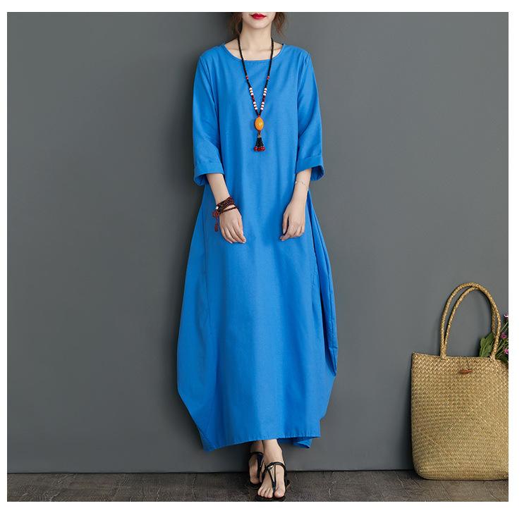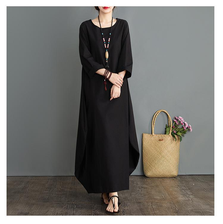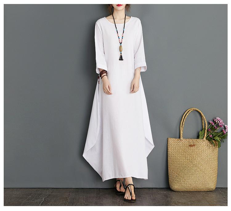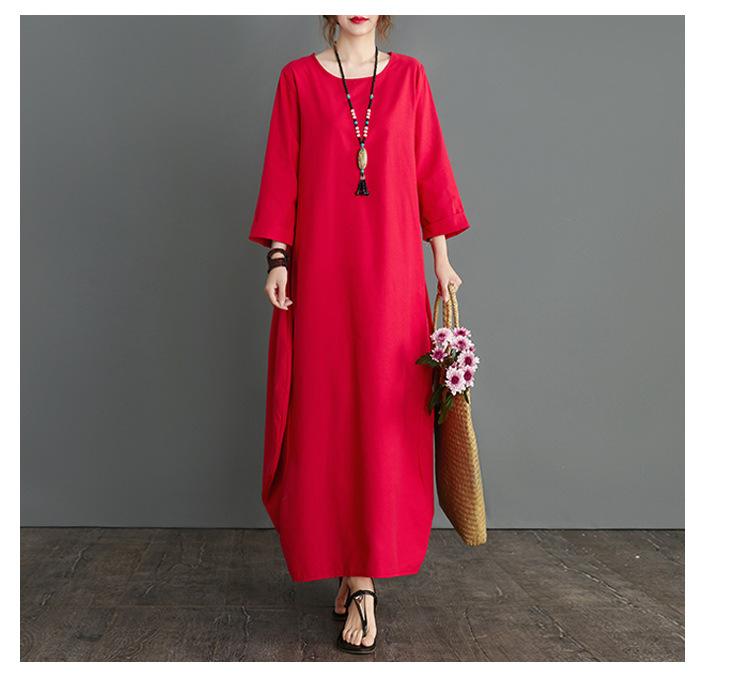 Nuevo 2024 Amazon Aliexpress Wish Popular Suelto Talla Grande Algodón y Lino Vestido Falda Larga