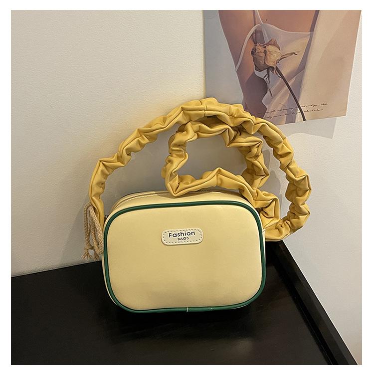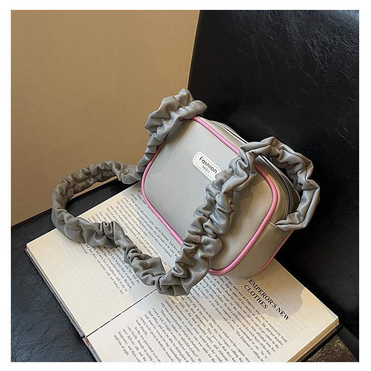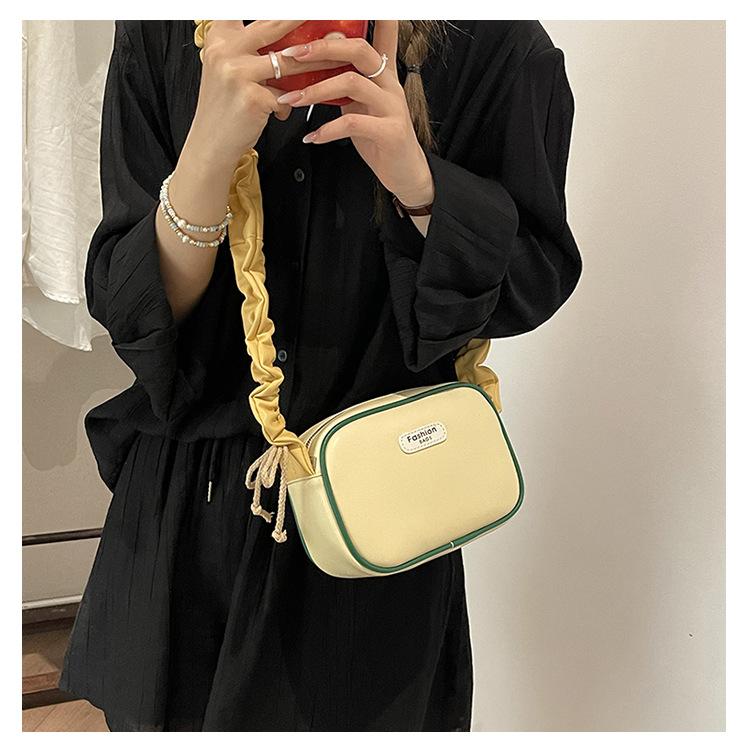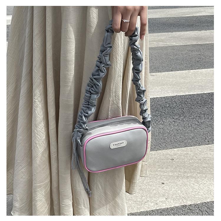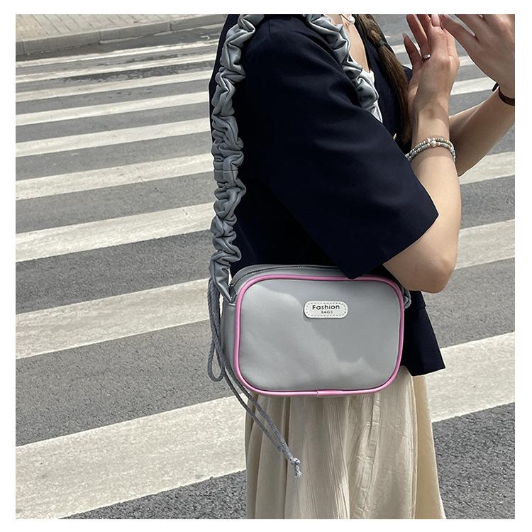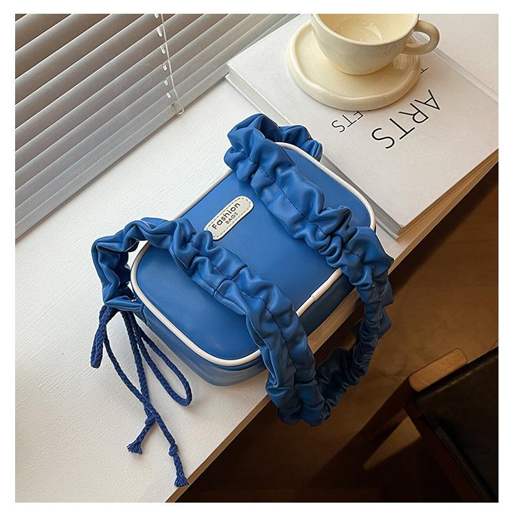 Bolso de Color Contrastante para Mujer 2025 Nuevo Estilo Popular Plisado de Un Solo Hombro Bolso Cuadrado Pequeño Moda Transfronteriza Textura Bolso Bandolera