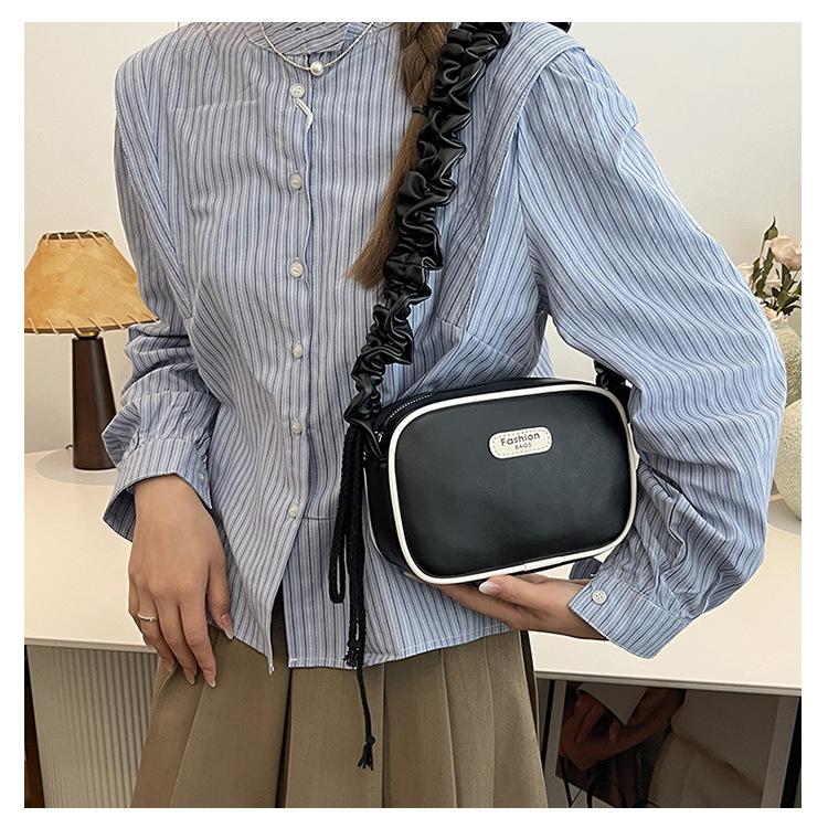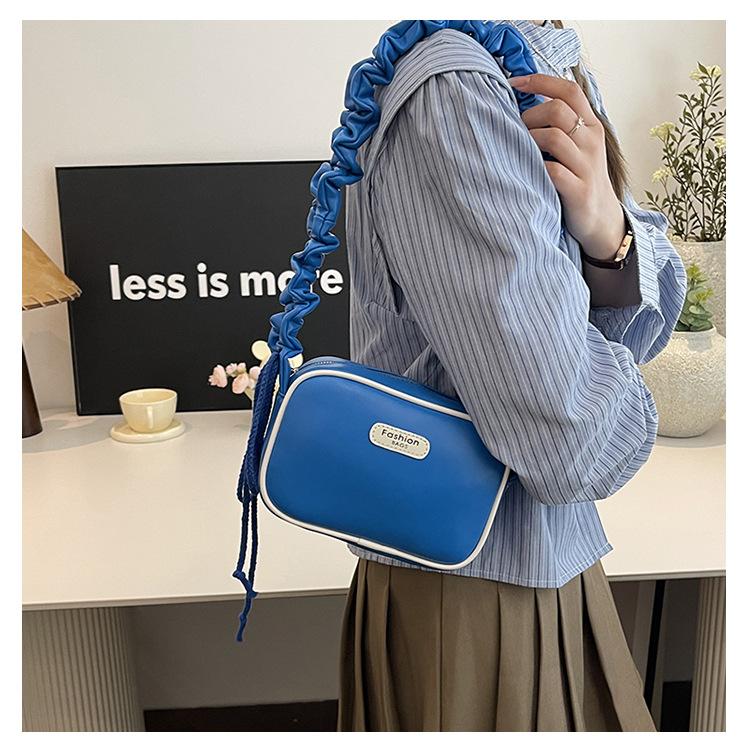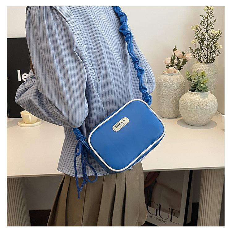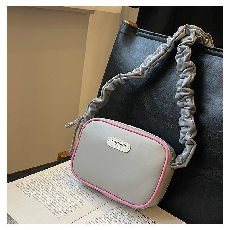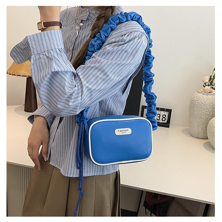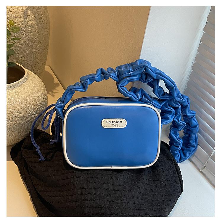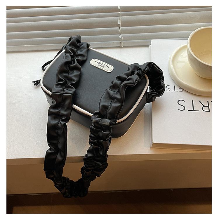 Bolso de Color Contrastante para Mujer 2025 Nuevo Estilo Popular Plisado de Un Solo Hombro Bolso Cuadrado Pequeño Moda Transfronteriza Textura Bolso Bandolera
