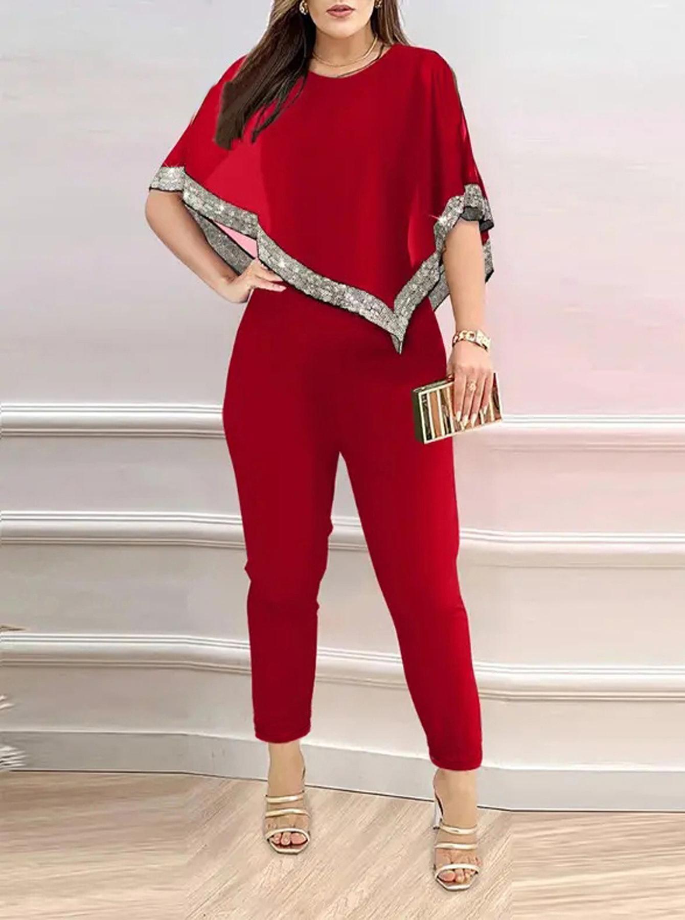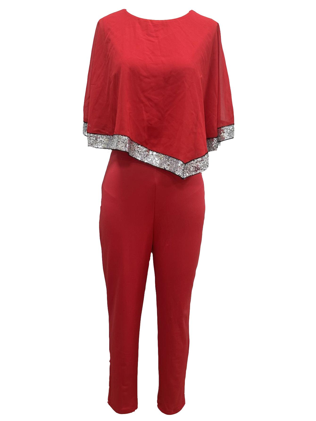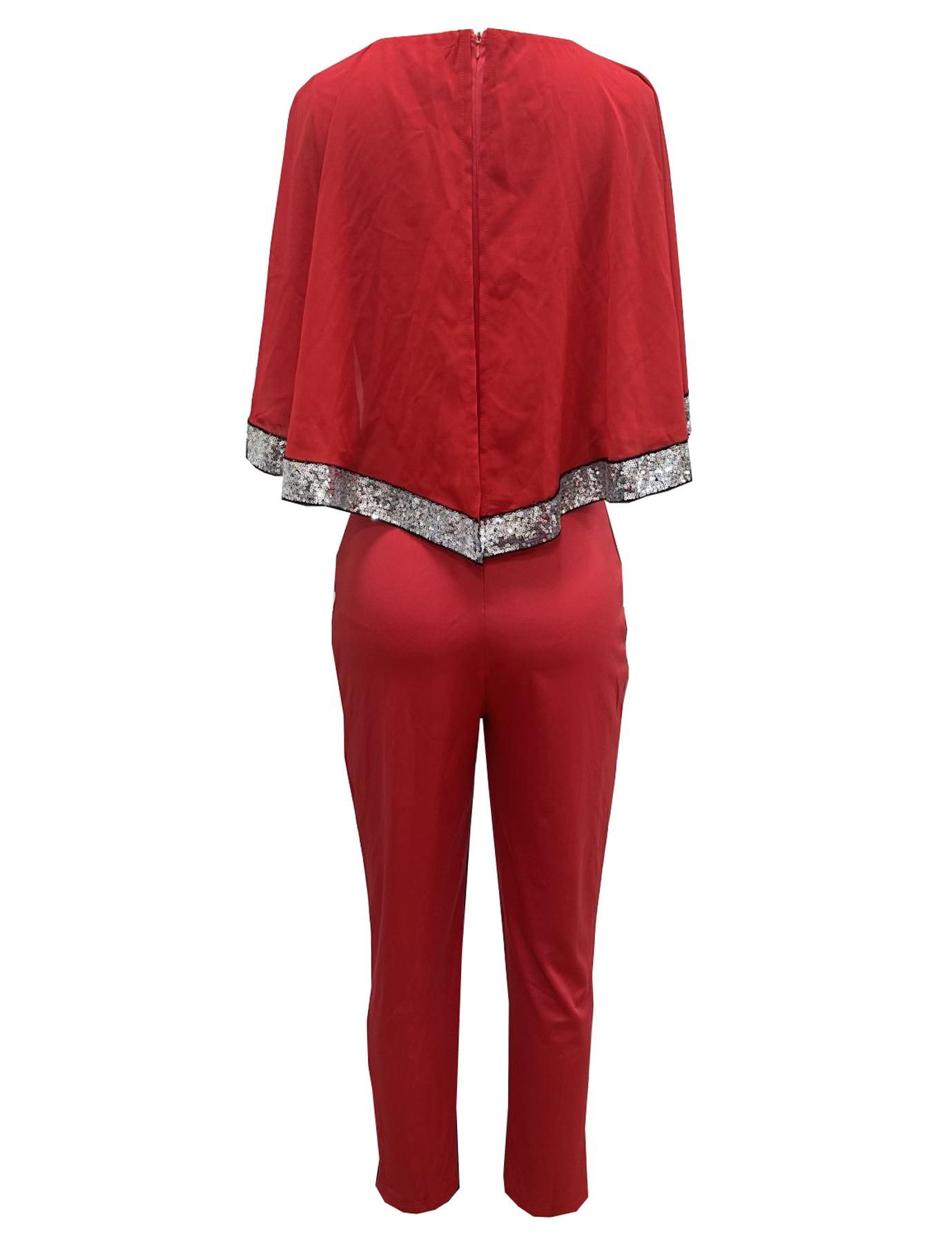 Primavera y Verano transfronterizo Mono de comercio exterior para mujer nuevo chifón lentejuelas costuras sexy cuello redondo ajustado