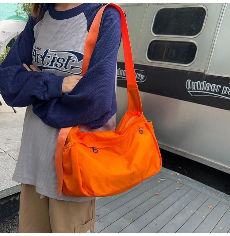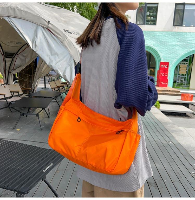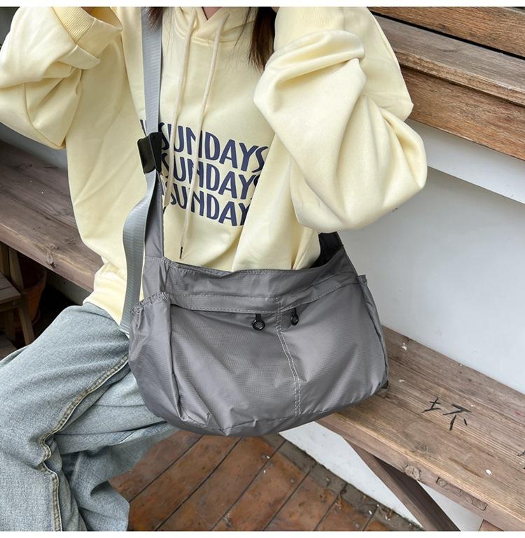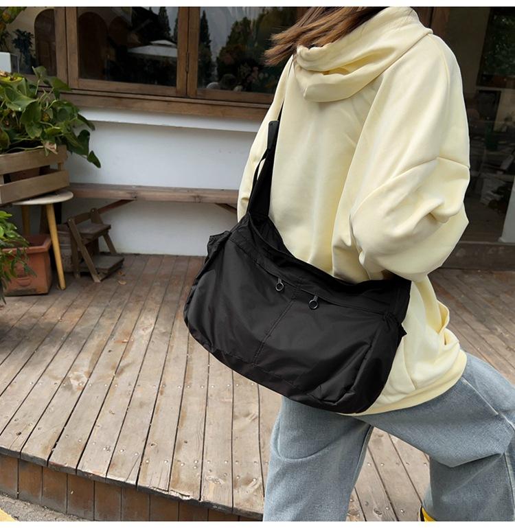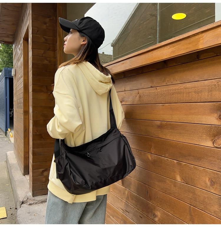 Bolso de nailon de gran capacidad para mujer, bandolera de un solo hombro, estilo informal, con múltiples bolsillos y solapa, 2024