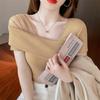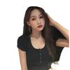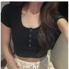 Camiseta de manga corta ajustada con cuello redondo y cintura alta para mujer, estilo nuevo de verano 2022
