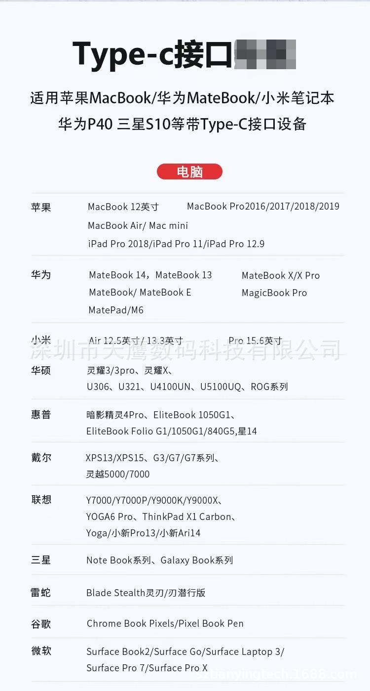 Modelos compatibles: macbook2015, macbook2016, Mac book pro, Huawei: matebook, HP: Pavilion x2, Dell: DELLXPS13, Lenovo: YOGA 5 PRO, ASUS, Google; Teléfonos móviles: Microsoft: 950, 950XL, LG: LG G5, HTC: ULTRA, Samsung: S8 S8+ NOTE 8 S9 Huawei: mate10 p20 modelo Porsche