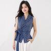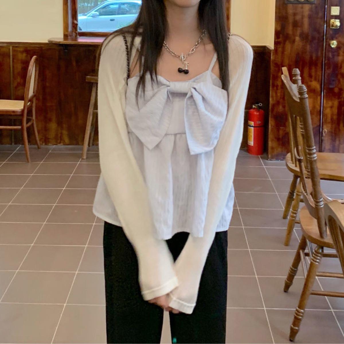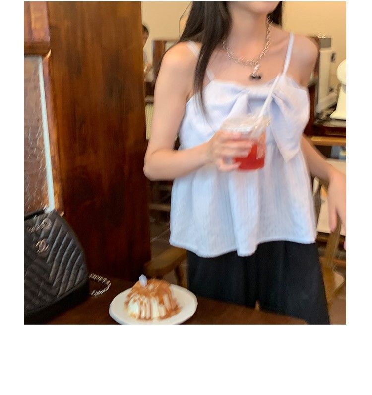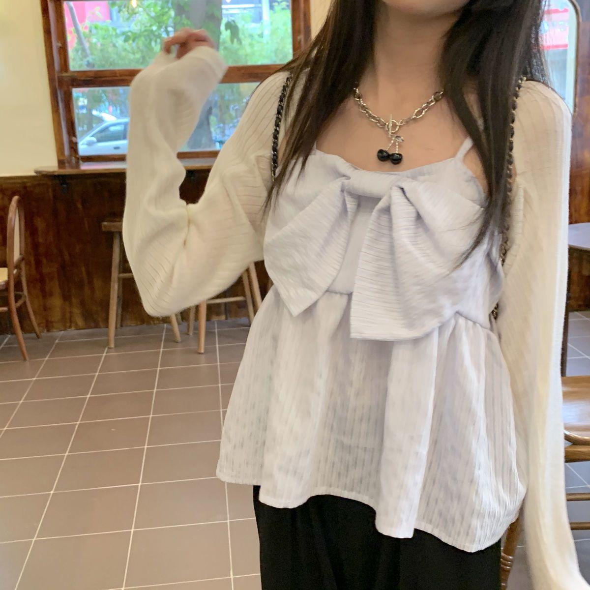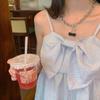 Moda 2025 Trendy Hecho en Casa Camisola Blanca y Azul a Rayas con Lazo Lindo y Cool para Mujer Nuevo Primavera y Otoño