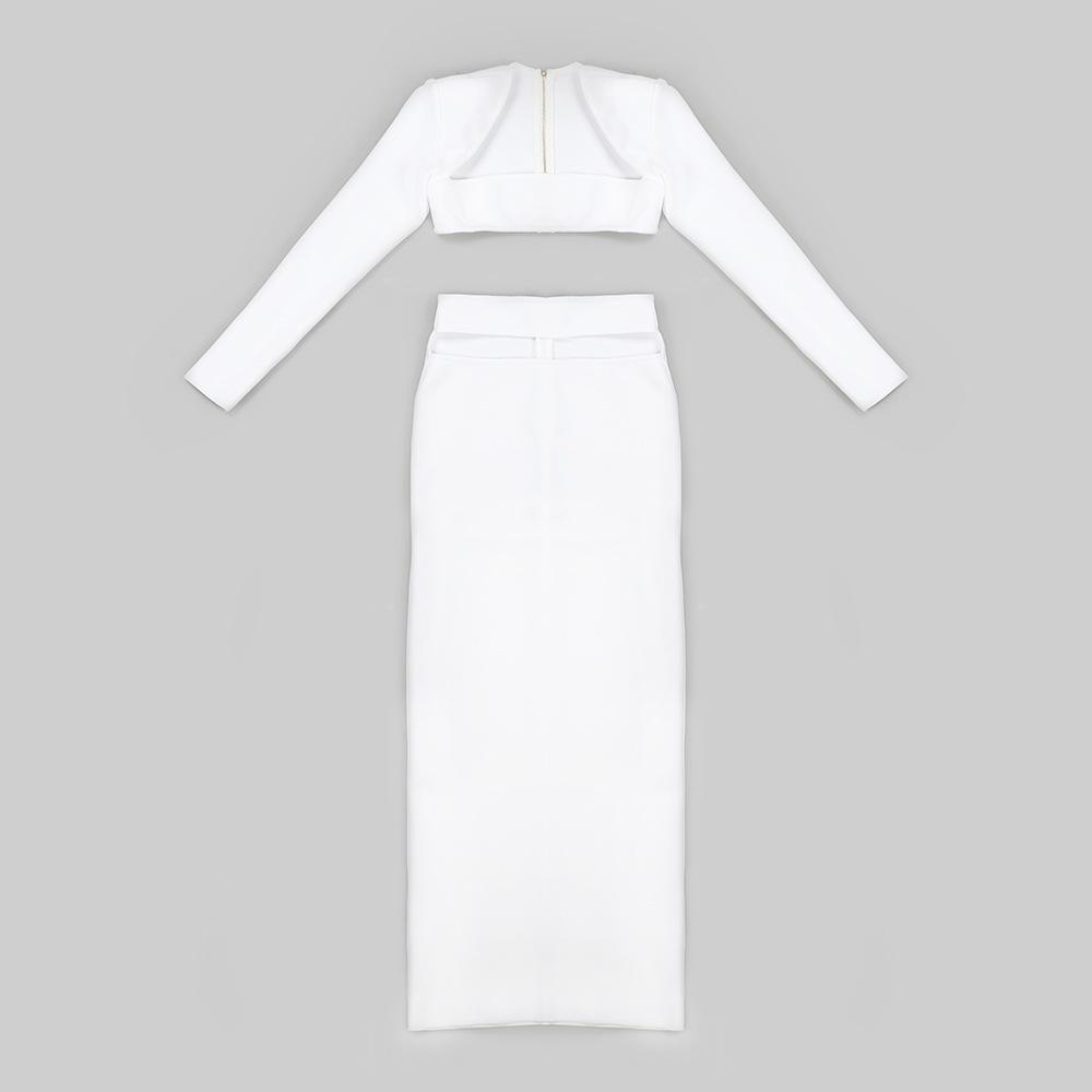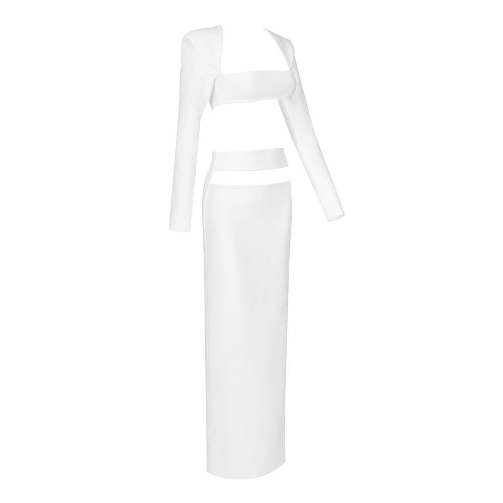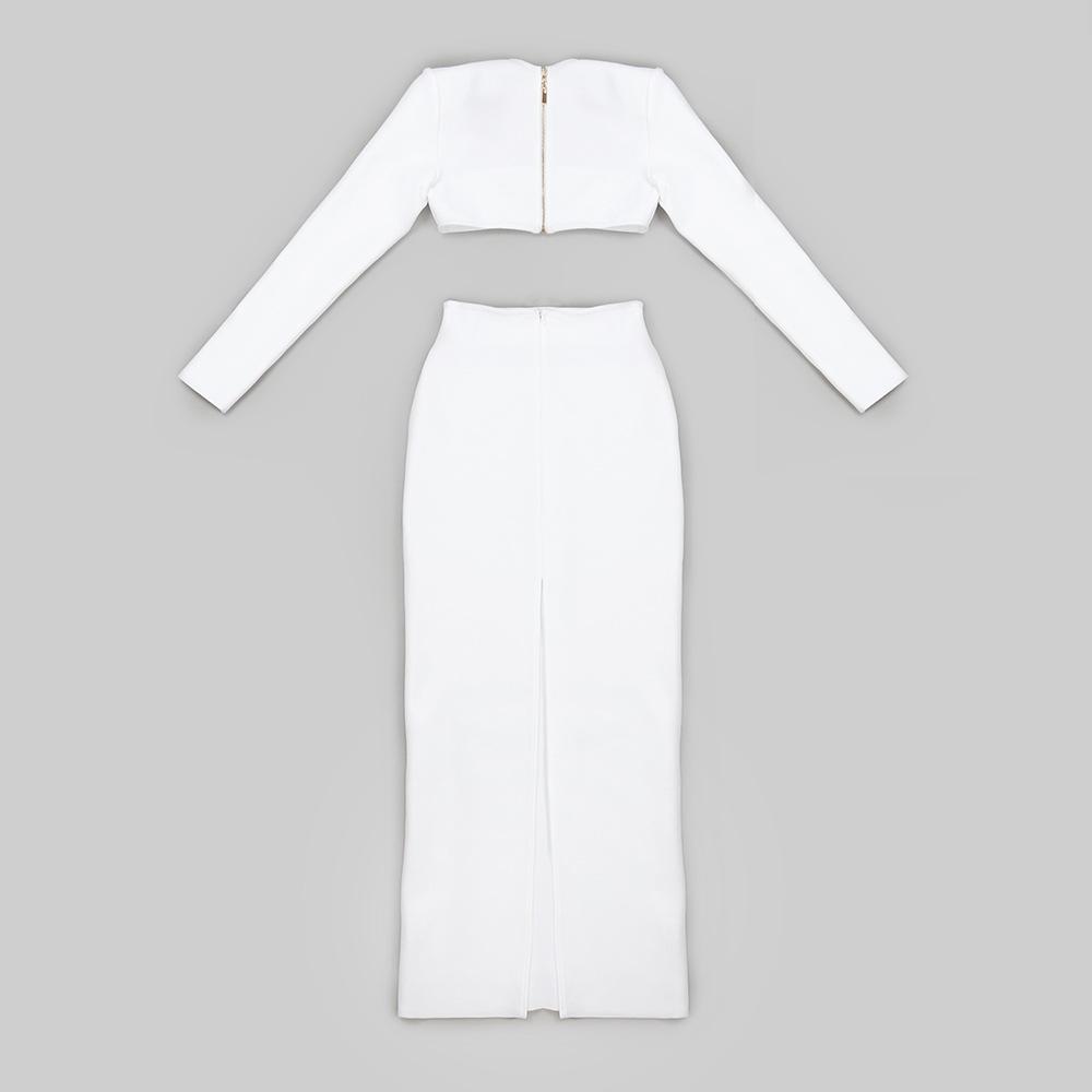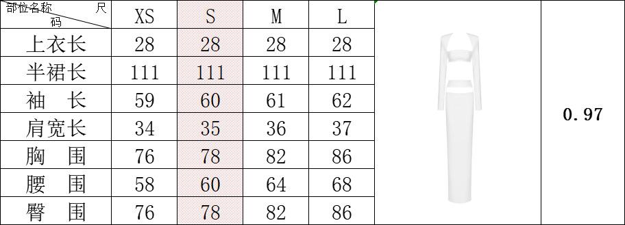 Conjunto de dos piezas transfronterizo Top de manga larga blanco y negro Vendaje elástico Falda larga Ropa europea y americana Verano Elegante