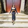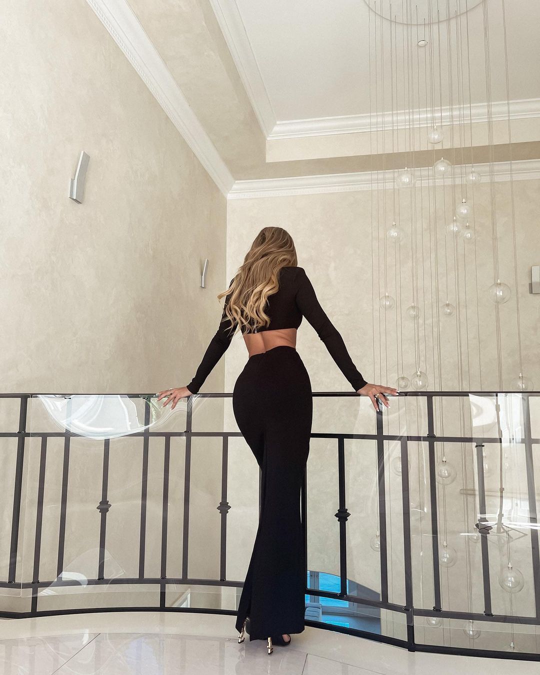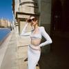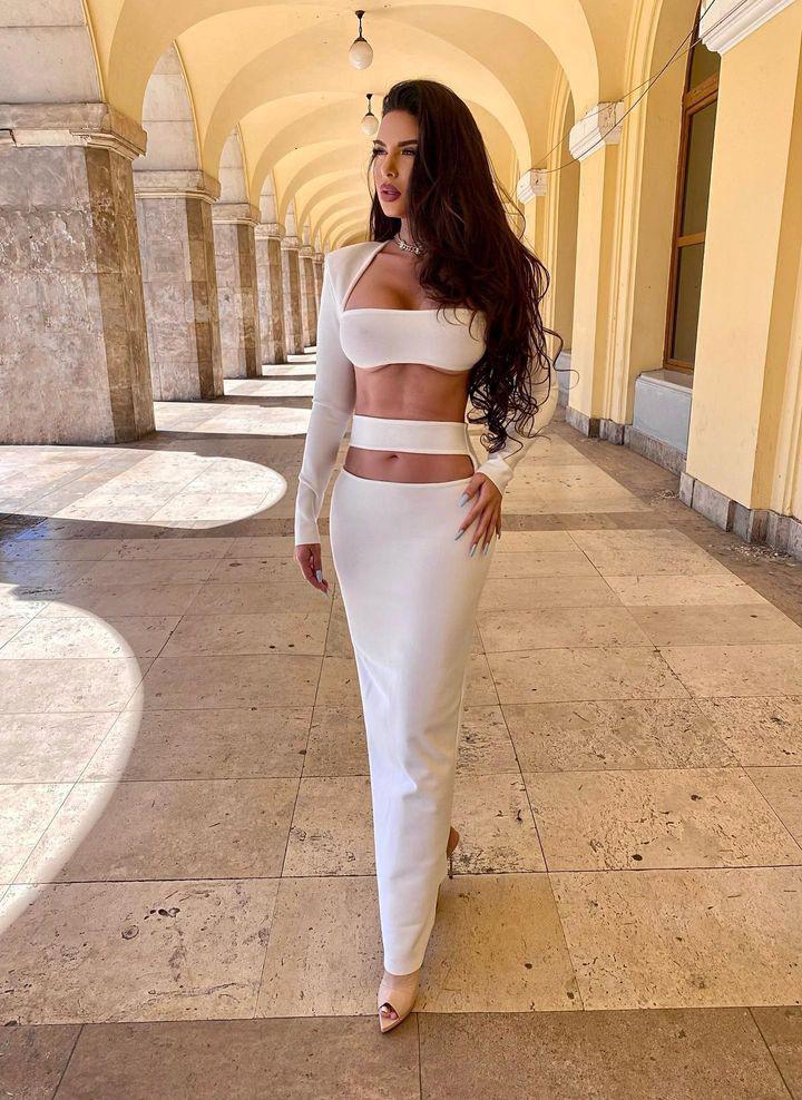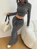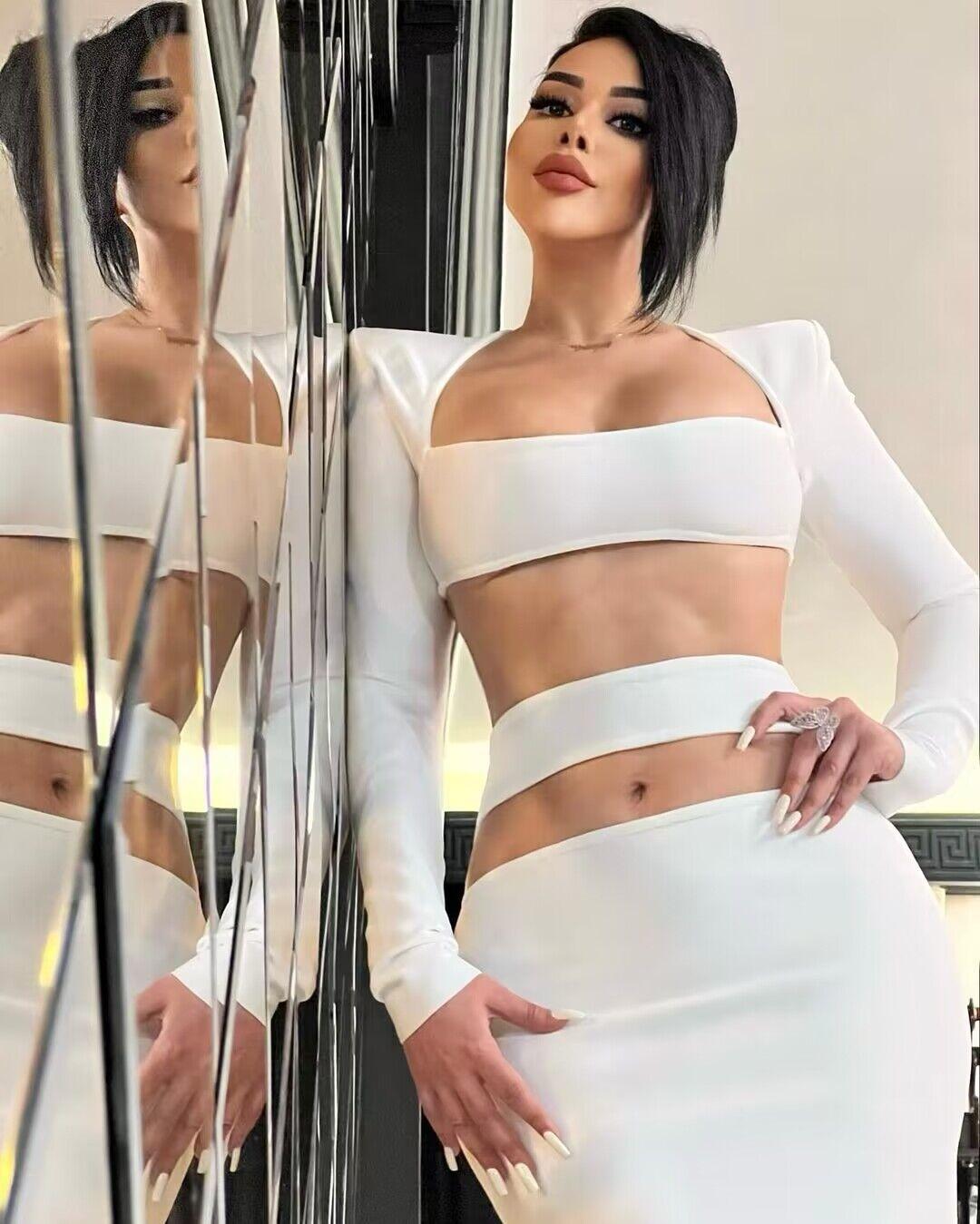 Conjunto de dos piezas transfronterizo Top de manga larga blanco y negro Vendaje elástico Falda larga Ropa europea y americana Verano Elegante