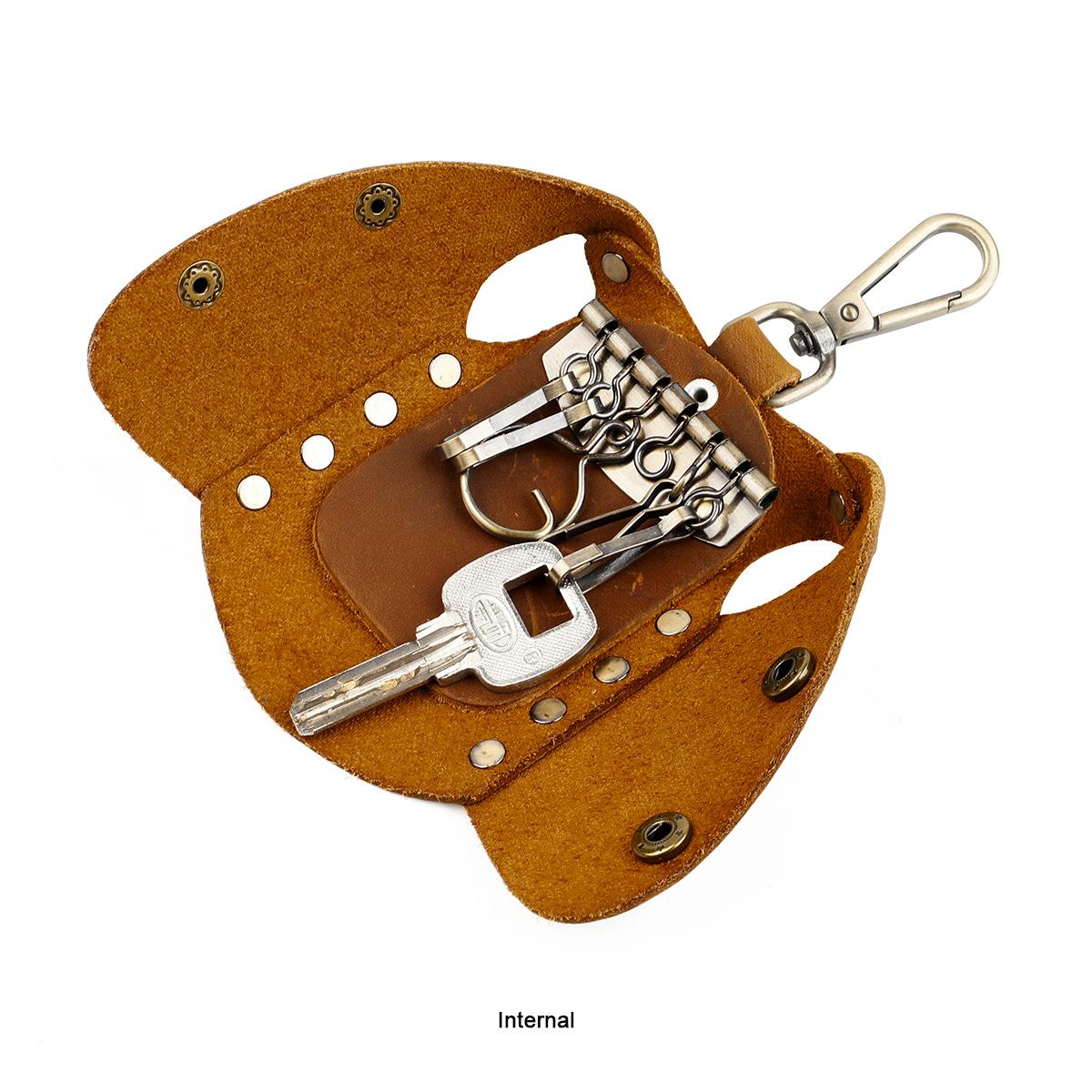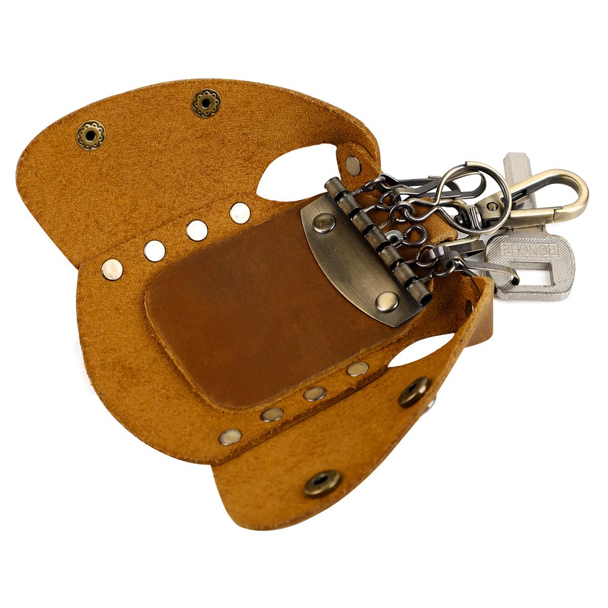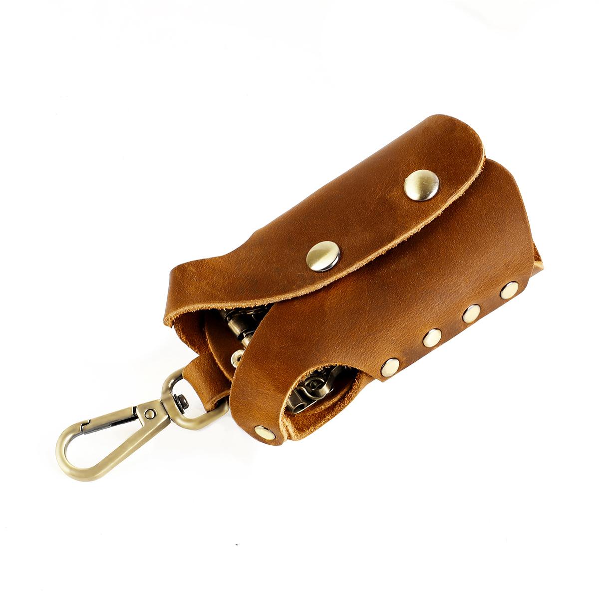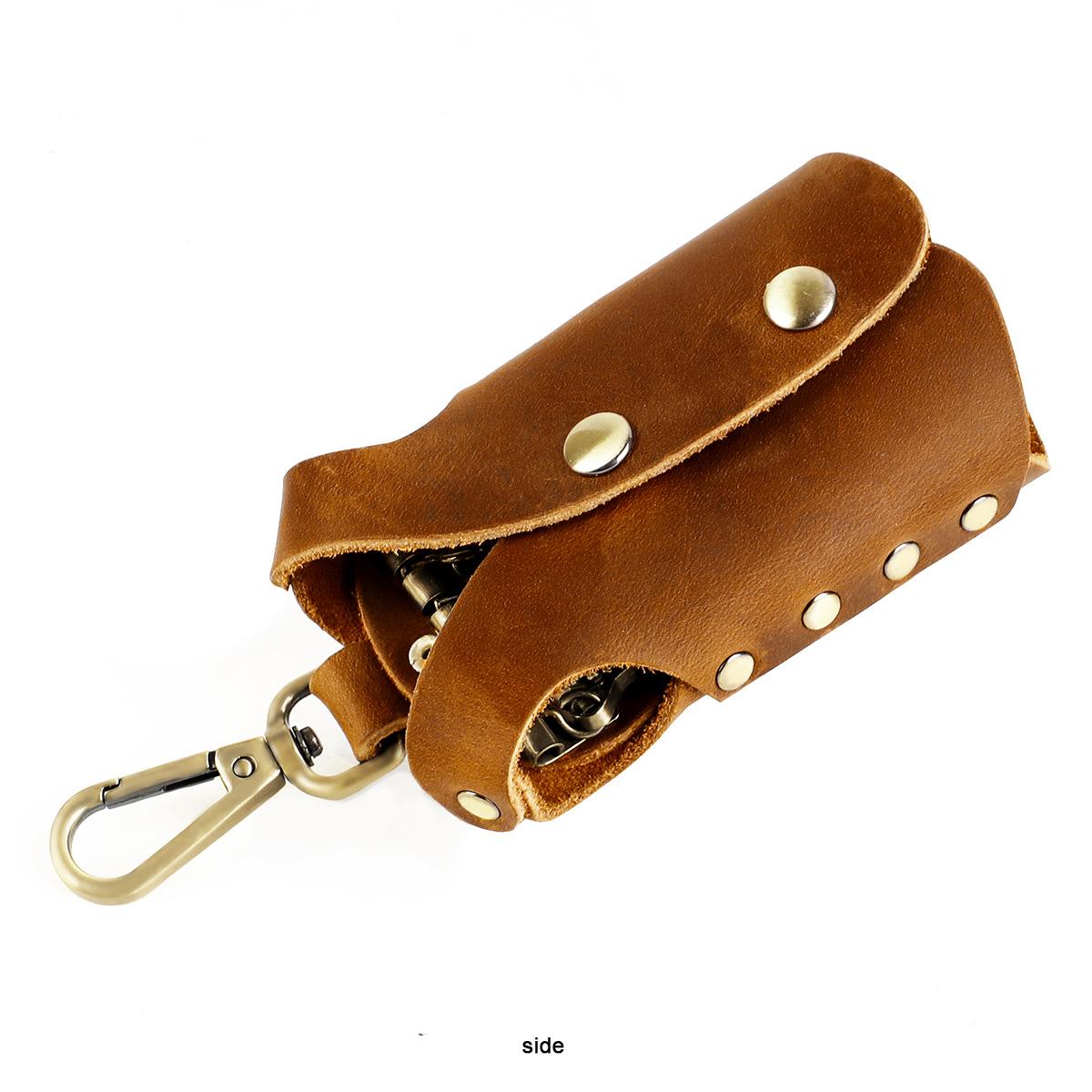 Bolsa para llaves de cuero genuino hecha a mano de primera capa de piel de vaca, juego de llaves de fabricantes, personalidad propia, mano