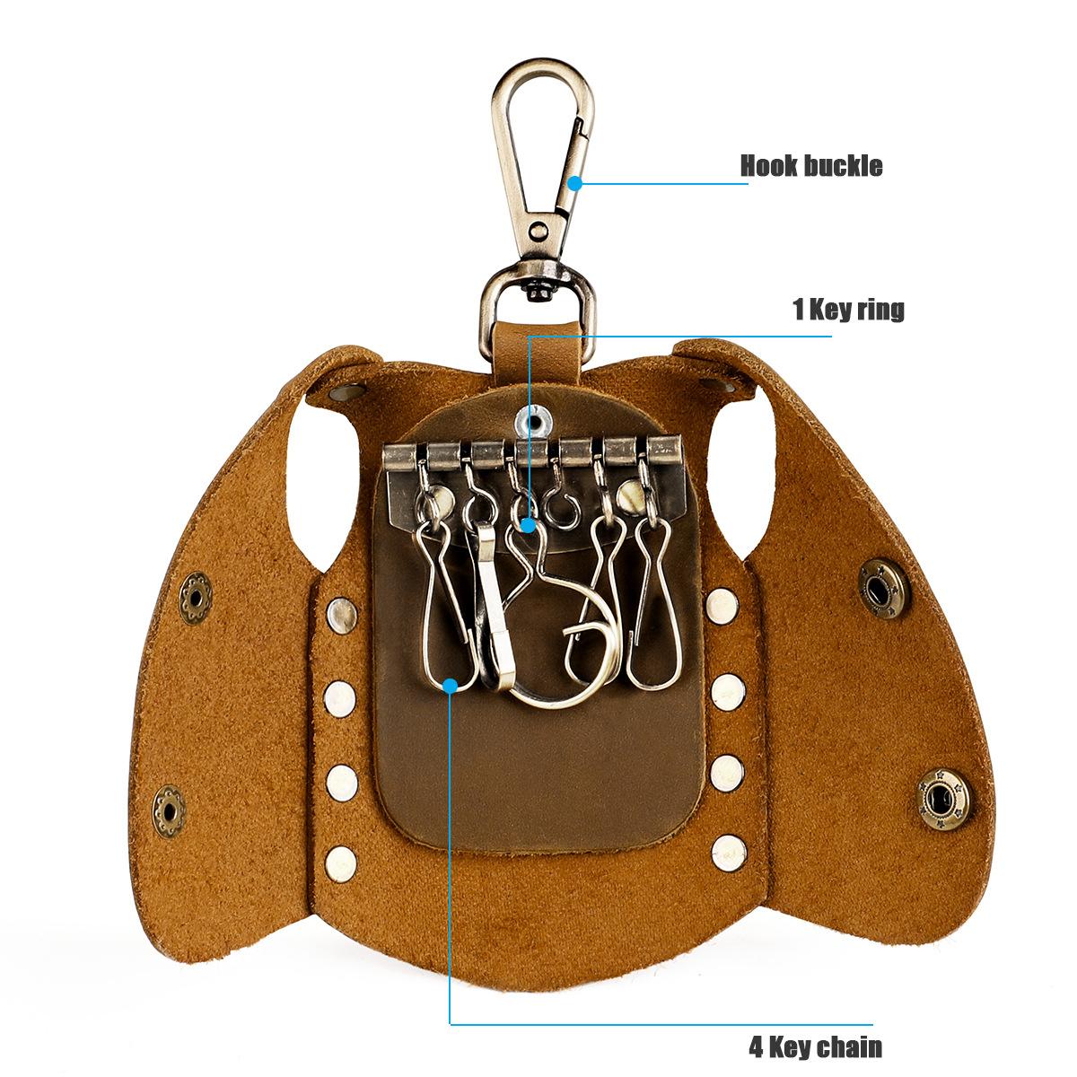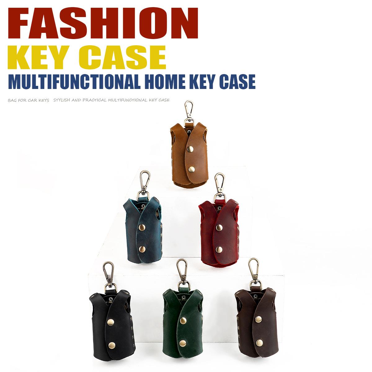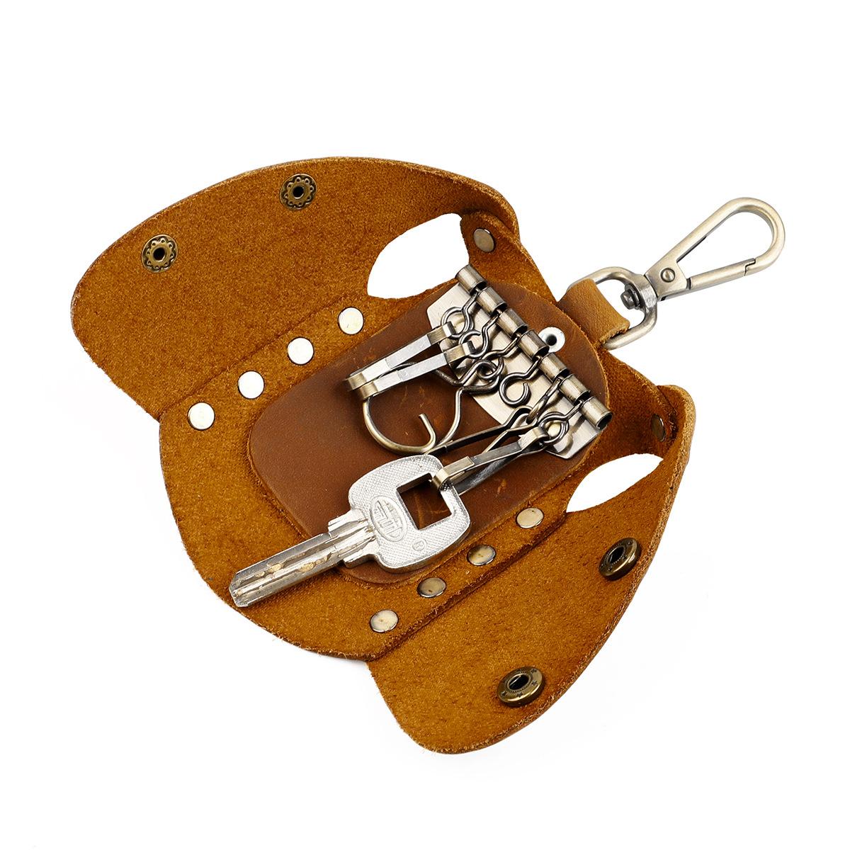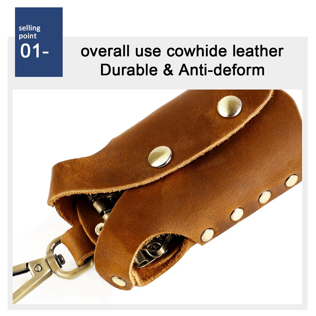 Bolsa para llaves de cuero genuino hecha a mano de primera capa de piel de vaca, juego de llaves de fabricantes, personalidad propia, mano