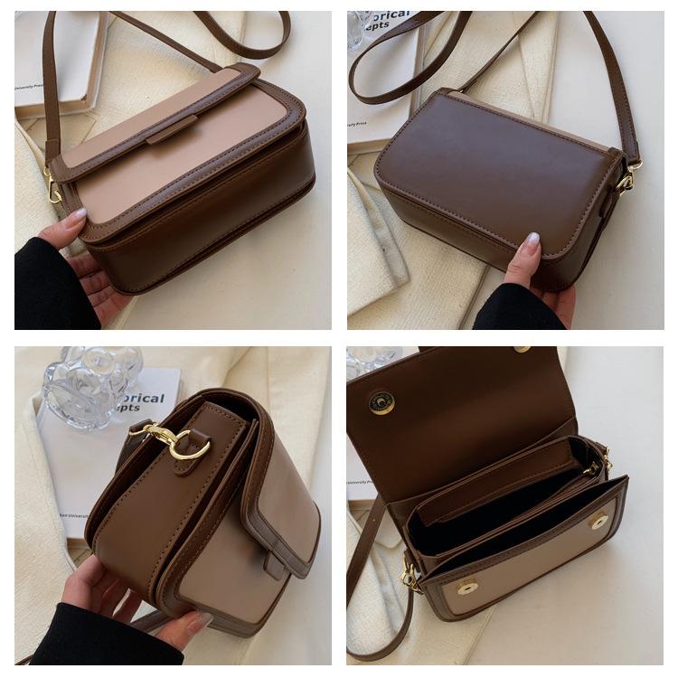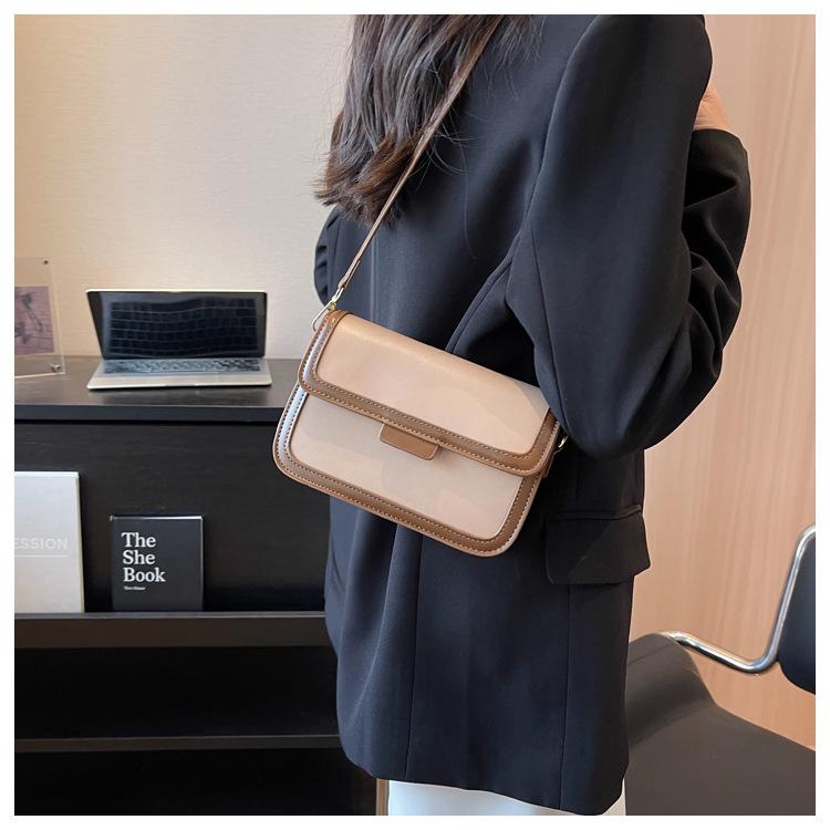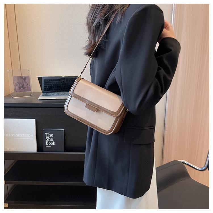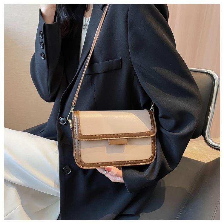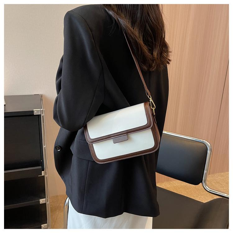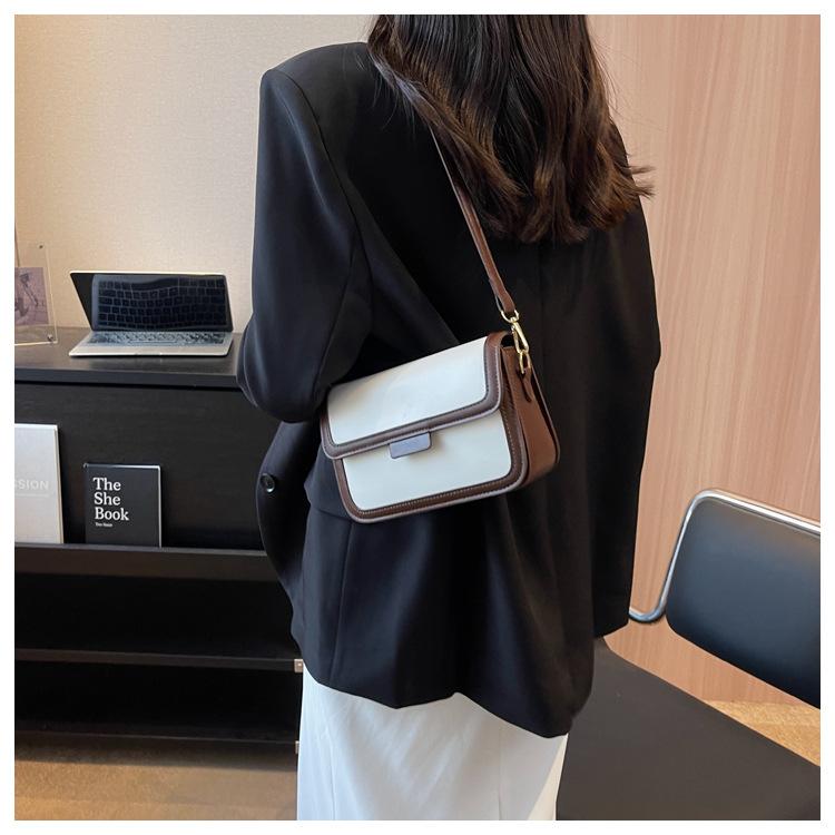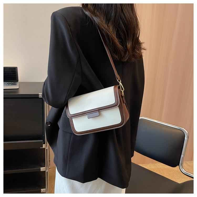 Bolso de Mujer 2023 Primavera Nuevo Moda Moderna Color Contraste Hombro Axila Bolso Cuadrado Pequeño Textura Coreana Retro Bandolera