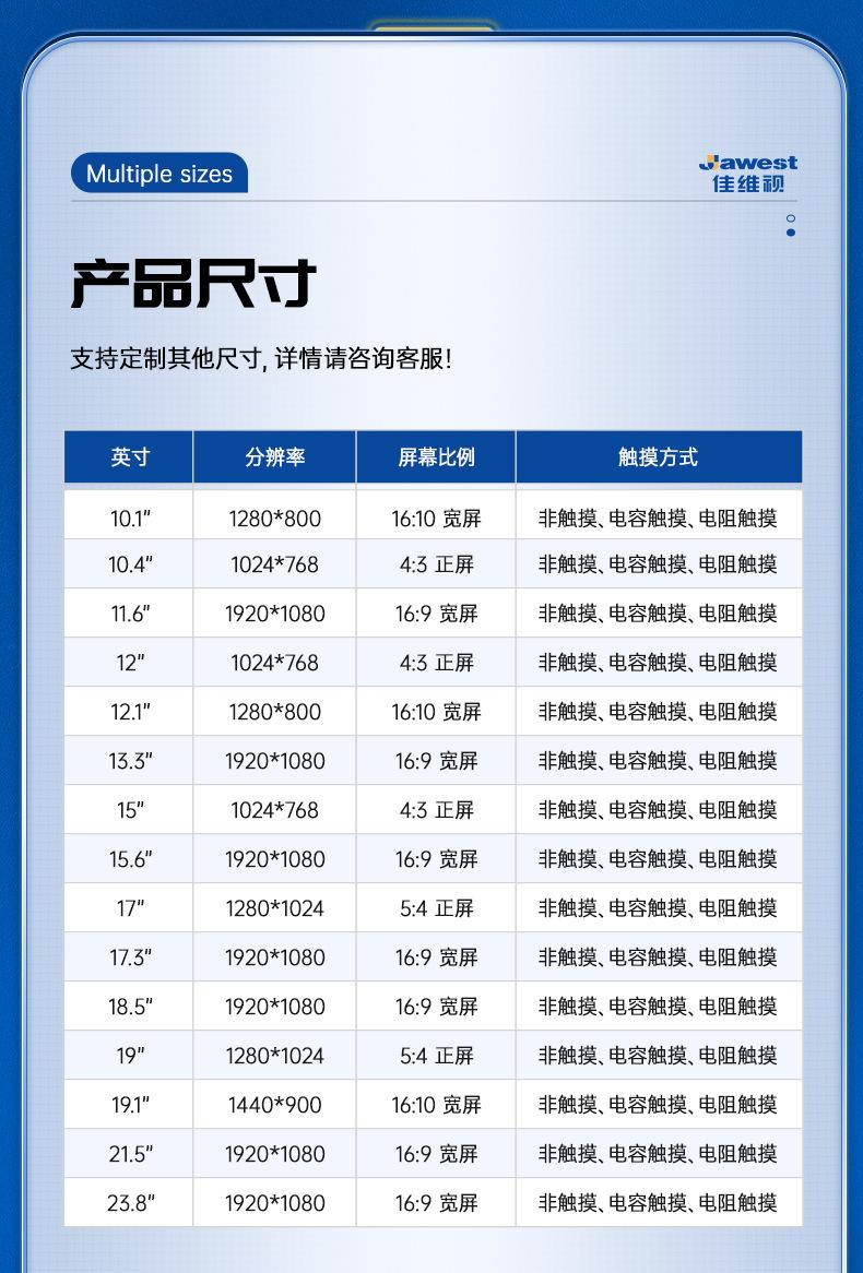 7inch, 8inch, 10.1inch, 10.4inch, 11.6inch, 12inch, 12inch wide, 13.3inch, 15inch, 15.6inch, 17inch, 17.3inch,...